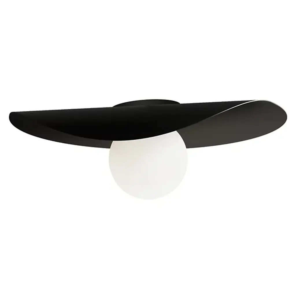 The Moja Semi-Flushmount from Dounia Home fuses artisanal Moroccan methods with a clean-surfaced contemporary character. Its curving metalwork is made by hand in Morocco to evoke the winding curves of a coastline, suspending a disc shade that drapes across inner lamping. The circular canopy and slim stem support the shade and lamping, scattering a mix of downlight and reflected radiance below. The metal’s hand-finished texture uses imperfections to add character to its surroundings, adding a hint of complexity to the straightforward structure.