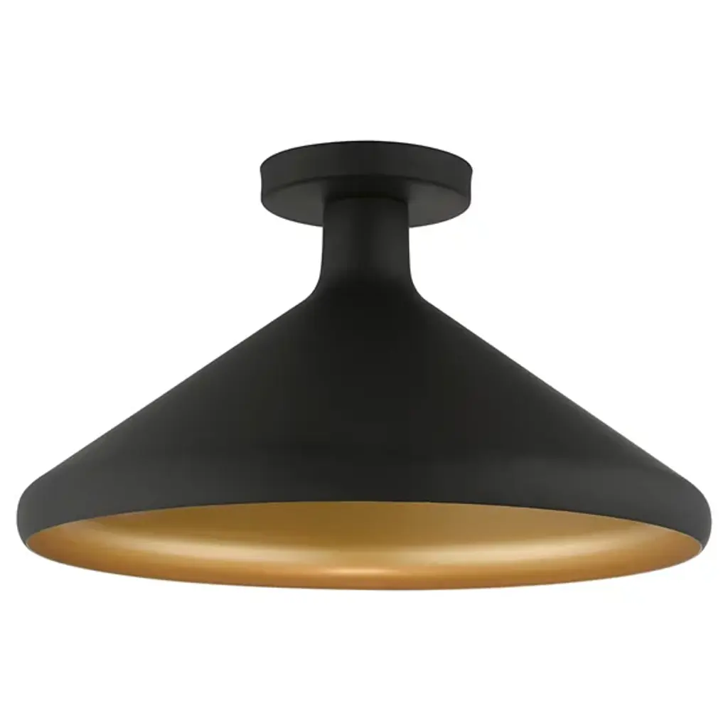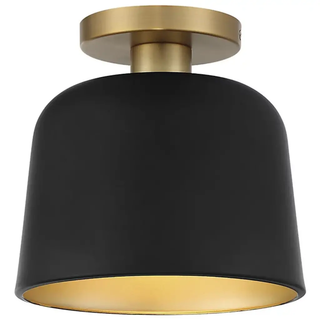 A deep-dish delight. The Morrow Semi-Flushmount from Alder & Ore creates visual comfort through its gradual shape and light. The design’s minimal decorative elements suggest a piece that works aesthetically across eras. The canopy follows the low-profile idea, mounting the piece tight against the ceiling for versatility in placement. The metal shade streams down and flares out in a depth-filled form to protect the eyes from side glare. Sporting a painted interior, the shade guides the bright light gradually down for a soft, streaming glow.
