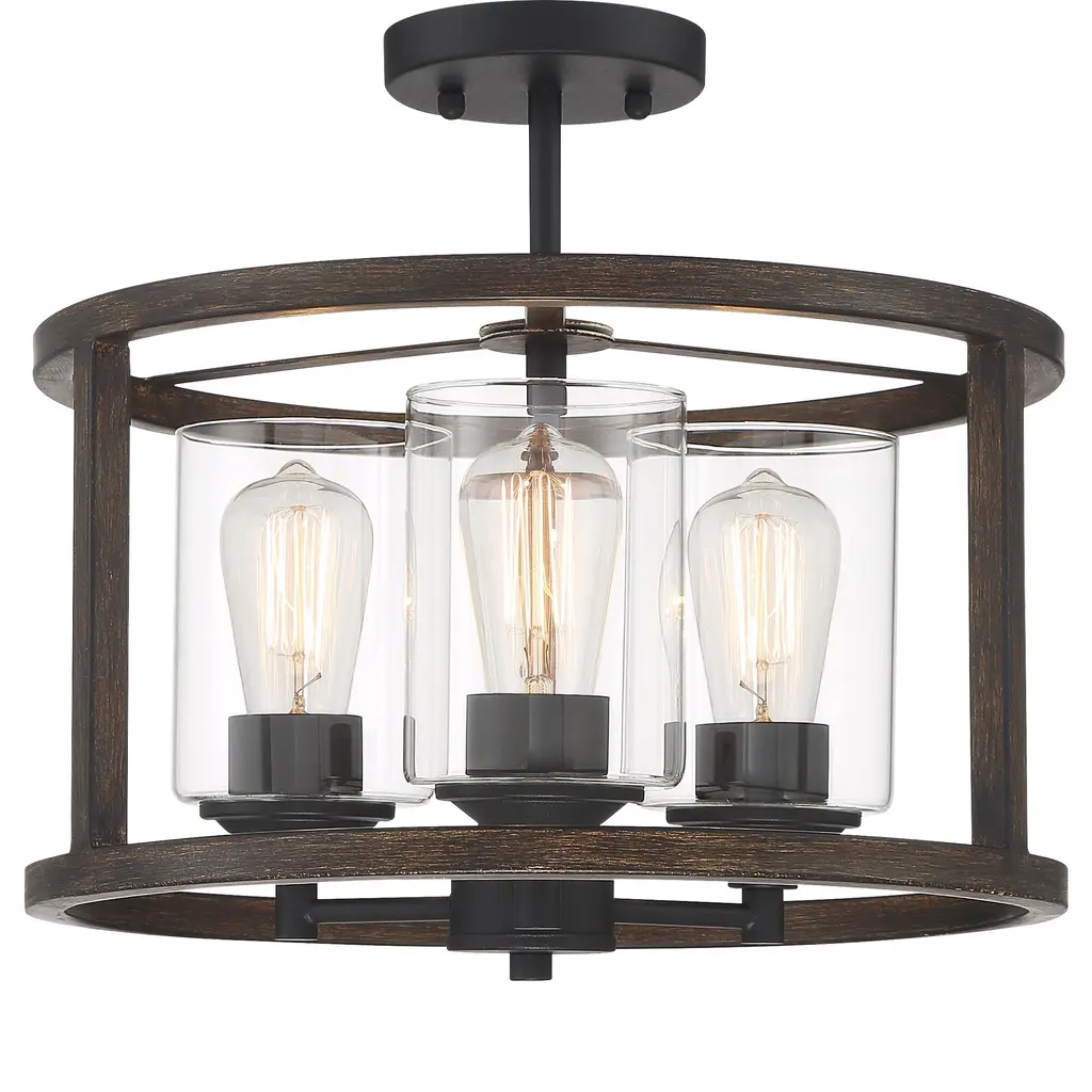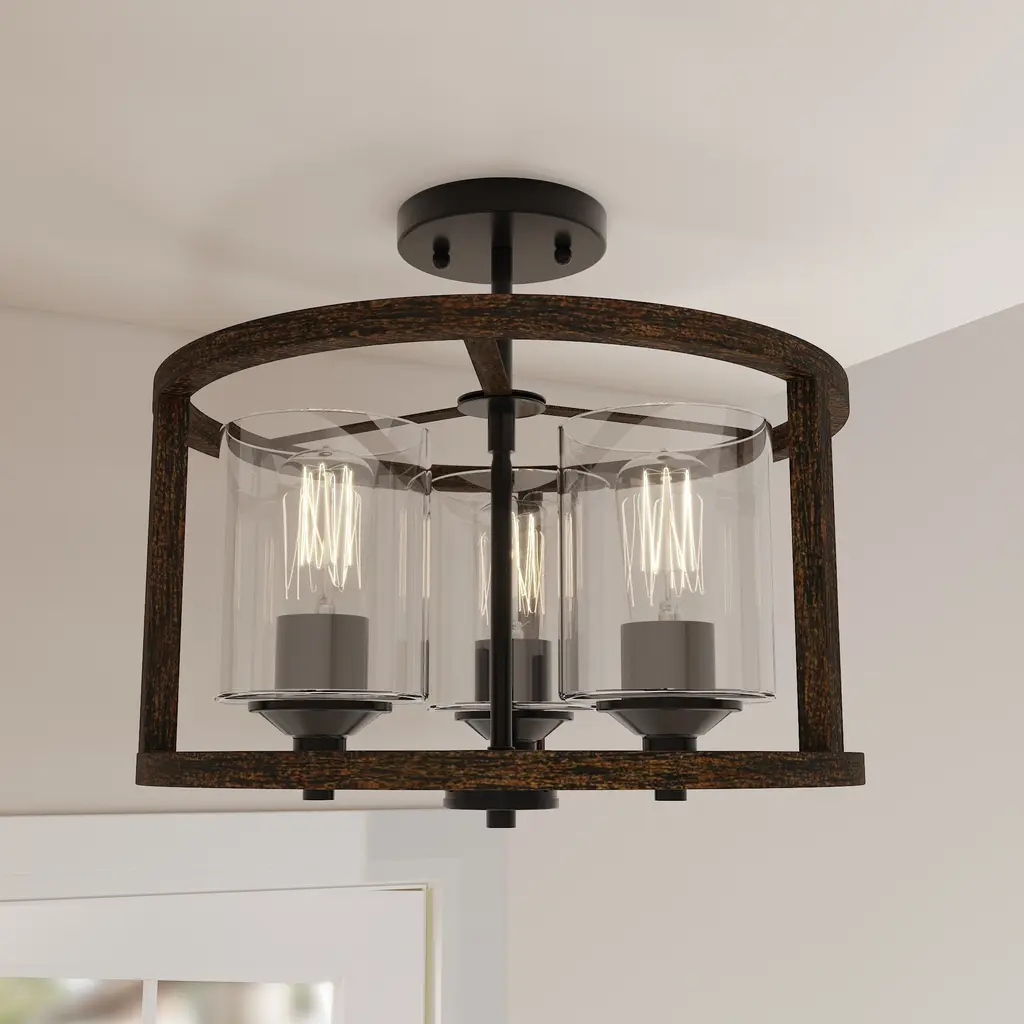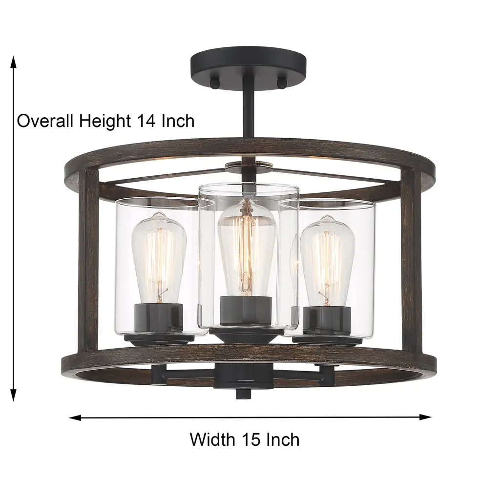 Moulins 3-Light Modern Farmhouse Semi-Flush Mount Ceiling Lights With Ul Certified - 15'' - Weathered Walnut