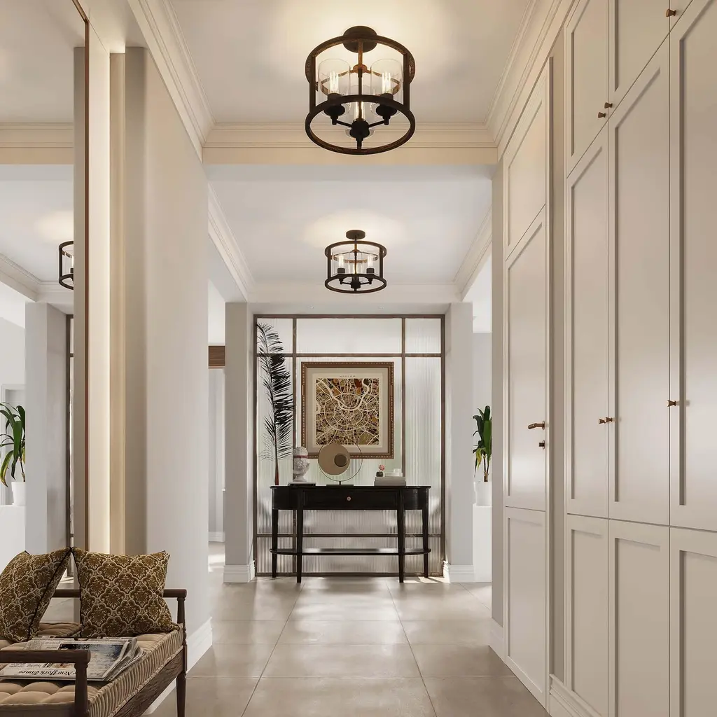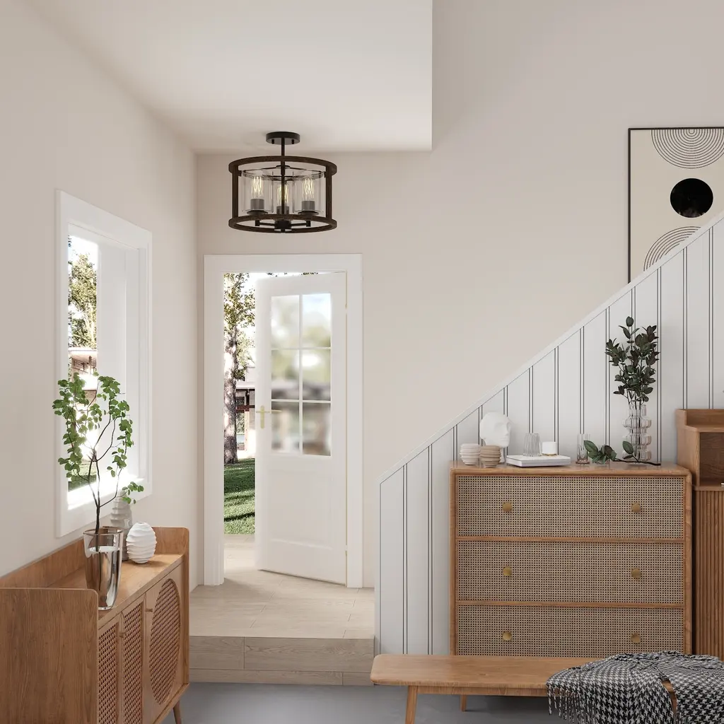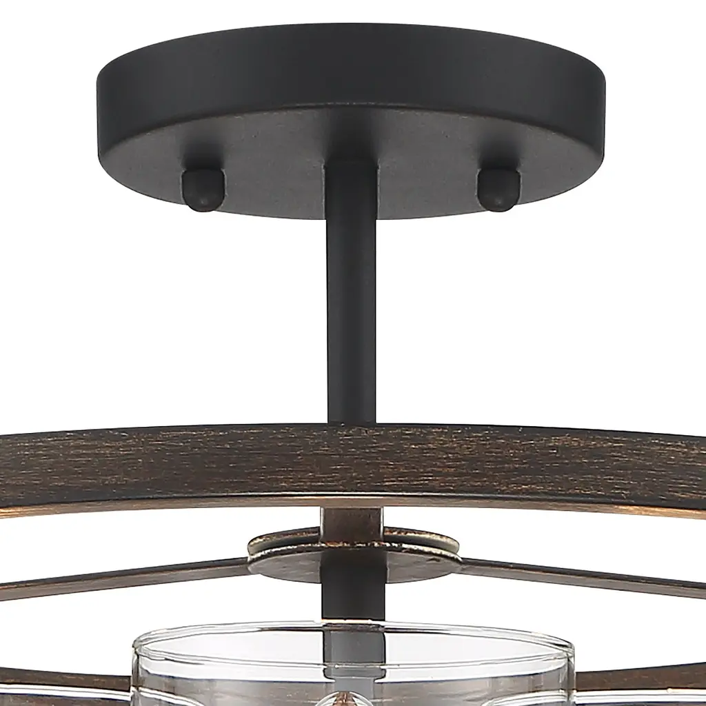 Moulins 3-Light Modern Farmhouse Semi-Flush Mount Ceiling Lights With Ul Certified - 15'' - Weathered Walnut