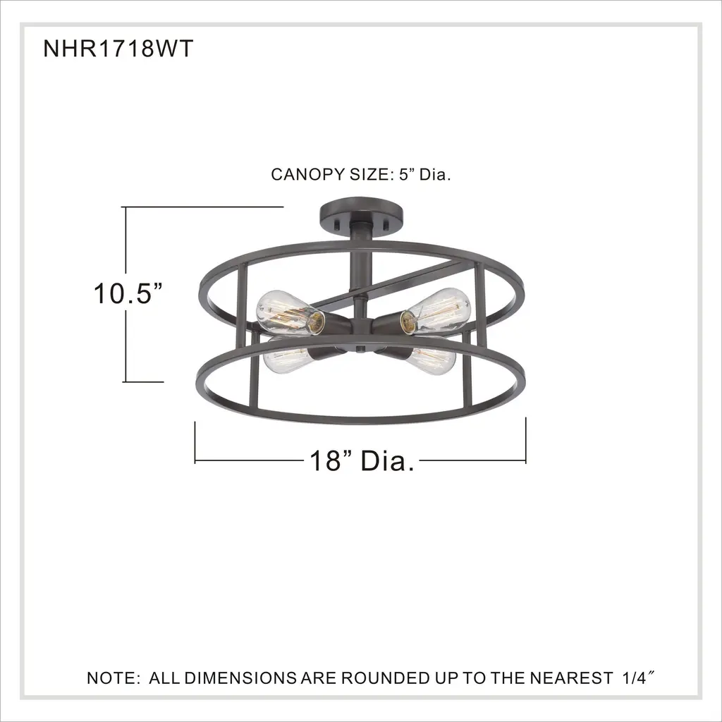 New Harbor 4 Light 18 Inch Western Bronze Semi-Flush Mount Ceiling Light