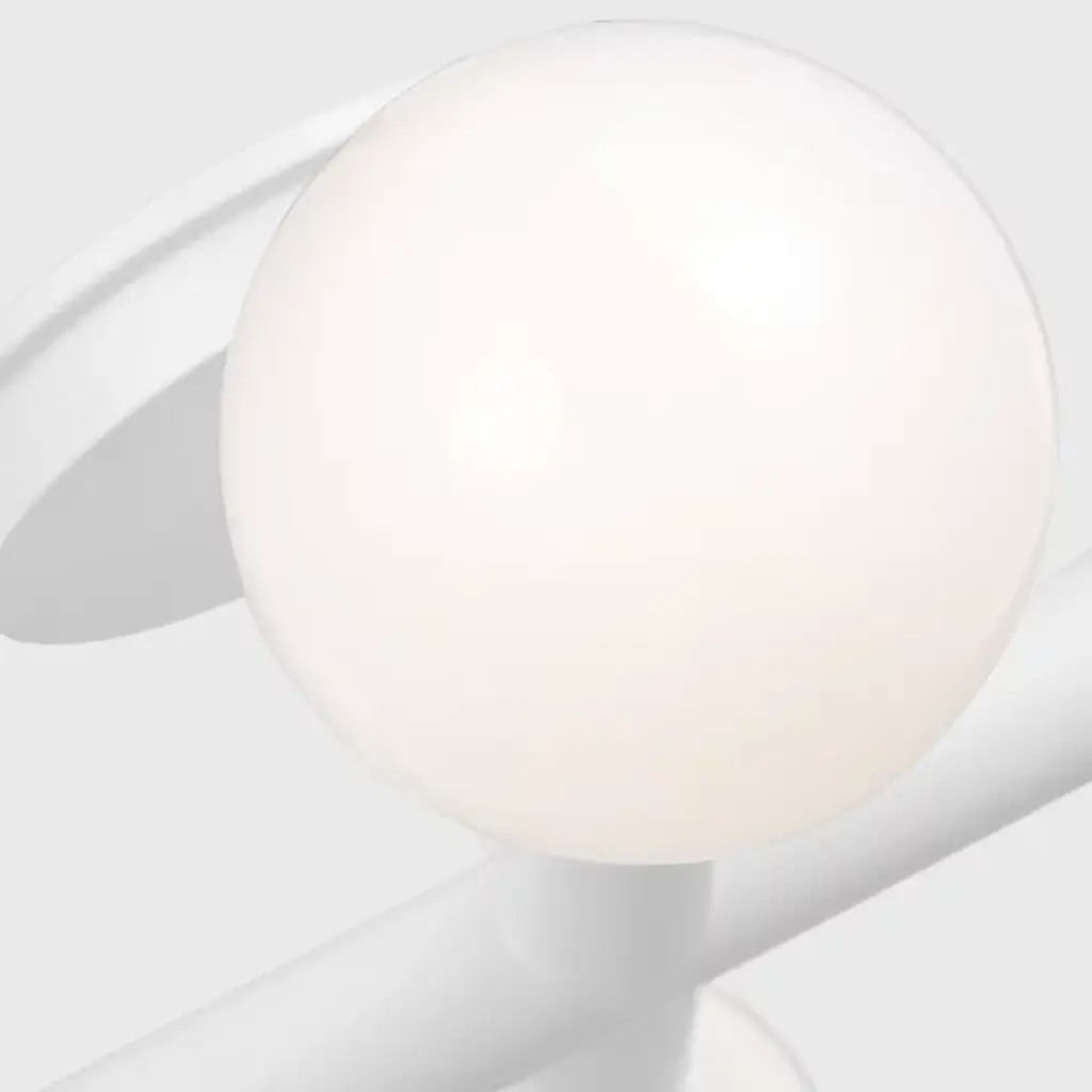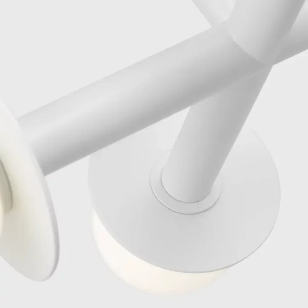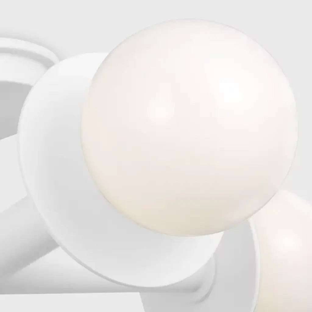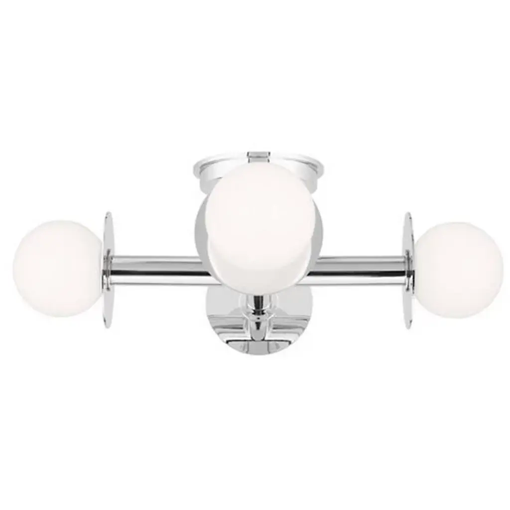 A simple yet abstract shape. The Nodes Semi-Flushmount from Visual Comfort Studio, formerly known as Kelly by Kelly Wearstler, has a minimalist design that will nonetheless bring a sense of contemporary style to your hallway, dining room, or living room. It features two Steel beams cross each other at a perpendicular angle with each beam ending on either end in a light fitting and a flat, round disk. A Glass globe covers the bulbs and provides a beautiful contrast of materials to this product.