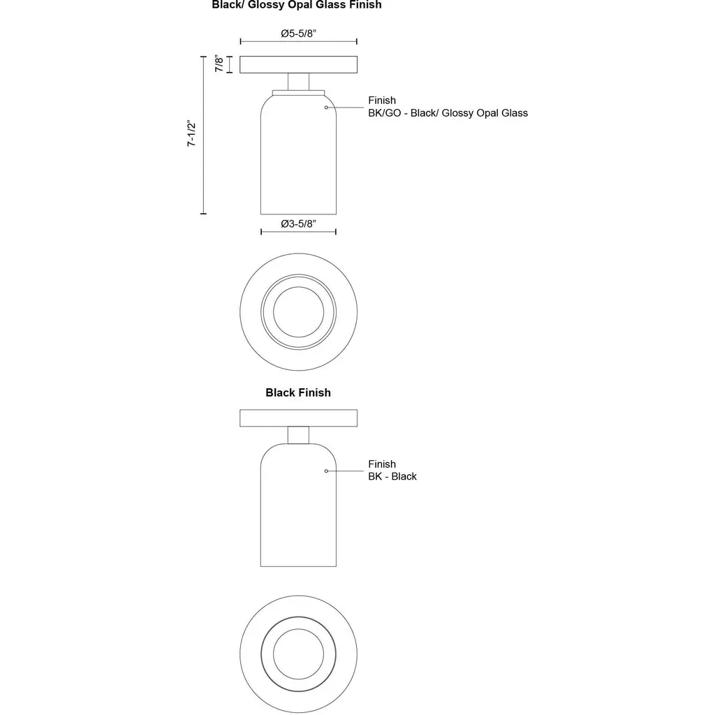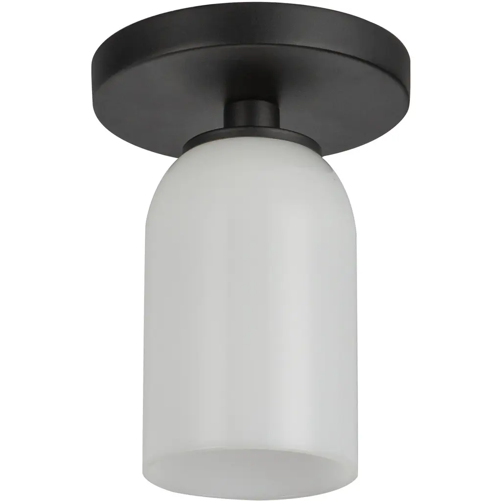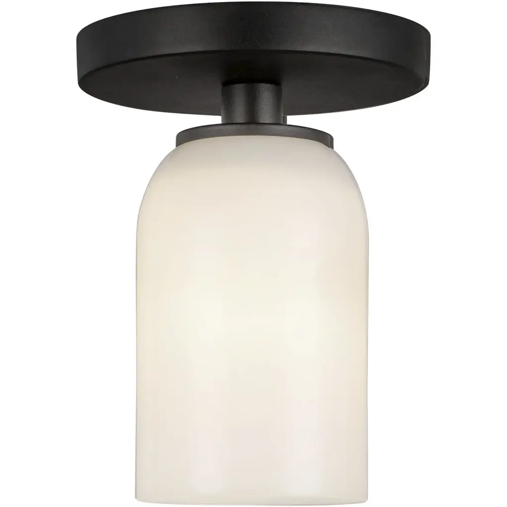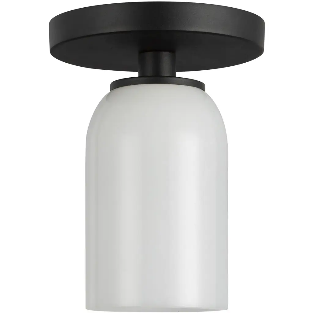 Nola 1 Light 3.63 Inch Black Semi-Flush Mount Ceiling Light In Glossy Opal Glass Shade