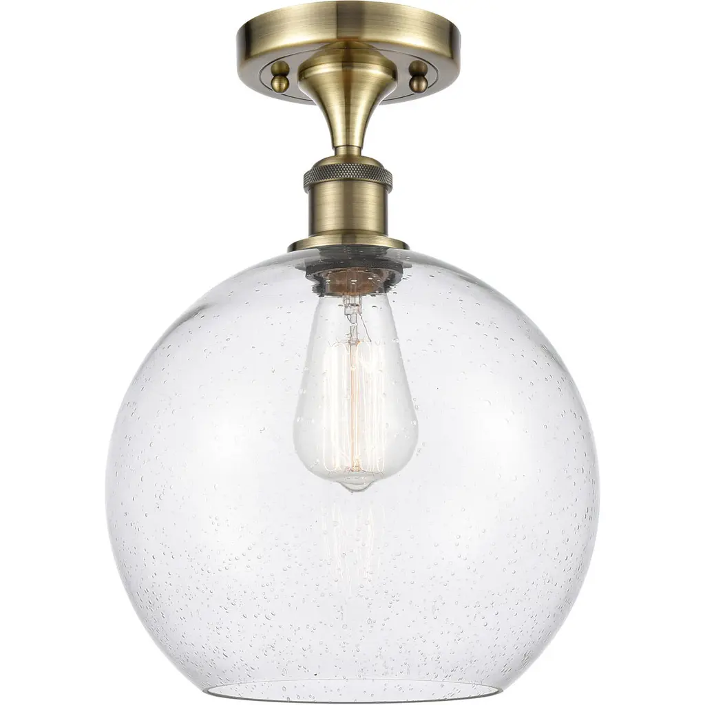 Nouveau 2 Beacon 1 Light 6 Inch Satin Gold Semi-Flush Mount Ceiling Light In Seedy Glass