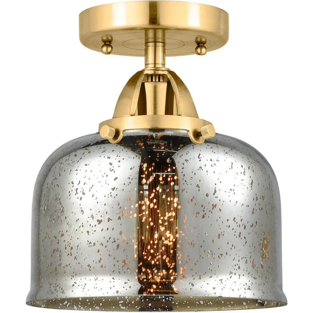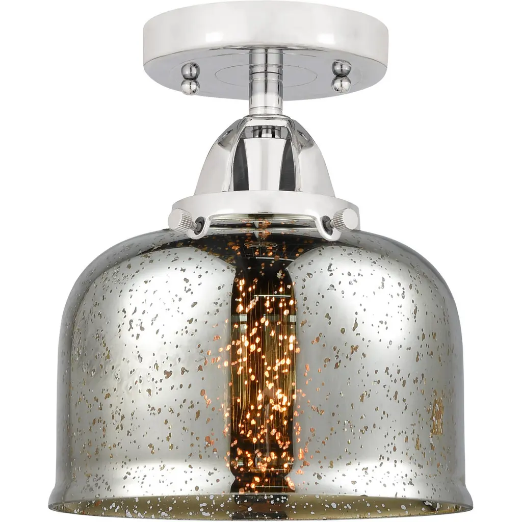 Nouveau 2 Large Bell 1 Light 8 Inch Polished Nickel Semi-Flush Mount Ceiling Light In Silver Plated Mercury Glass