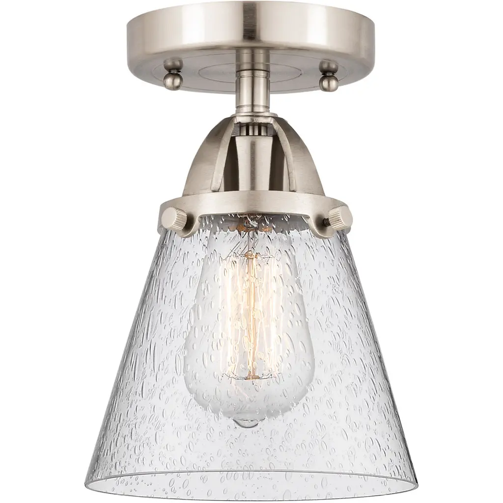 Nouveau 2 Small Cone 1 Light 6 Inch Matte Black Semi-Flush Mount Ceiling Light In Seedy Glass
