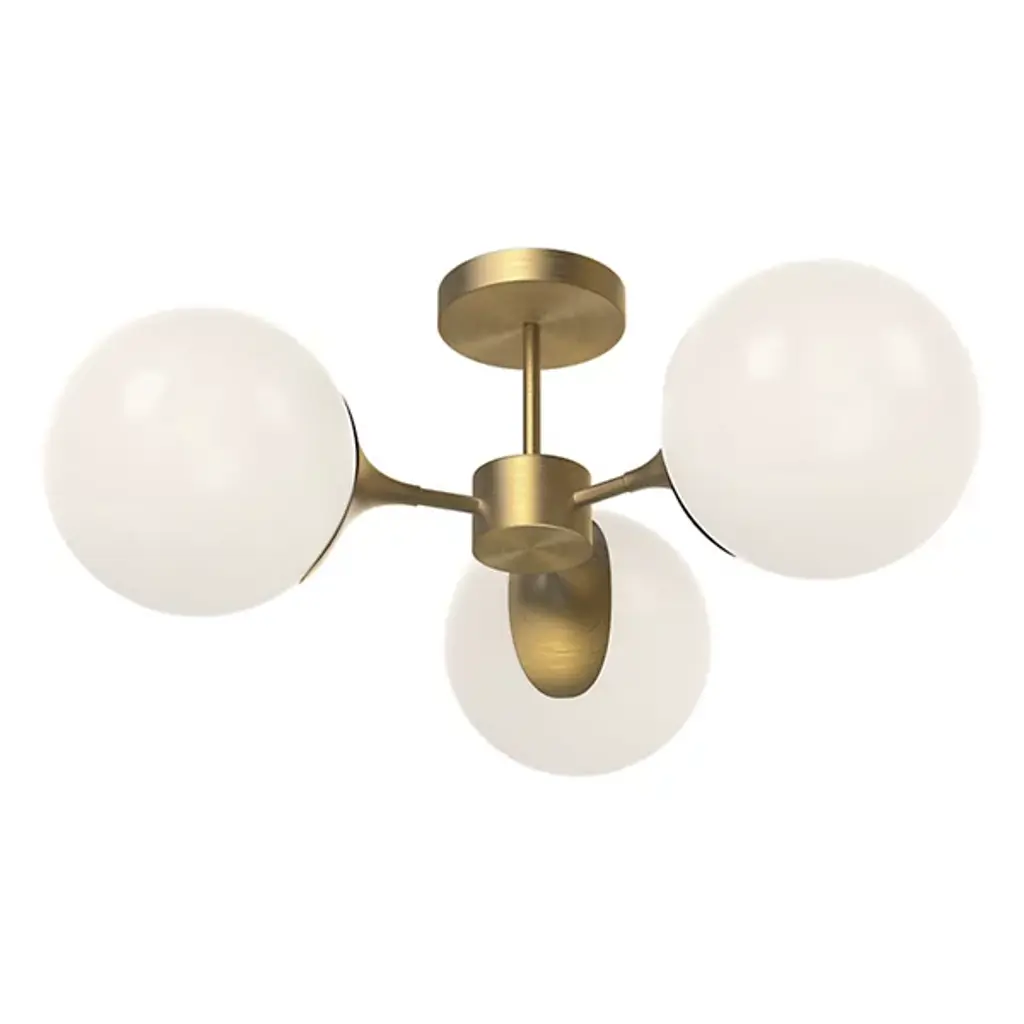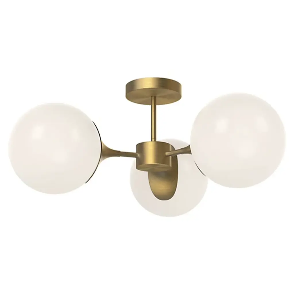Referencing the early 20th century Art Nouveau style, the Nouveau Semi Flushmount from Alora Mood dishes out an alluring glow and a silhouette of distinct curves. This piece does modern design with a retro flavor. It keeps its composition tight and close to the ceiling to complement a variety of rooms or hallways. From a short metal body at the center, a trio of arms shoots out with an organic shape. The solid finish of the arms gives a beautiful note of contrast to the delightful glass globes. Light passes through the globes as a glare-free, surrounding glow.
