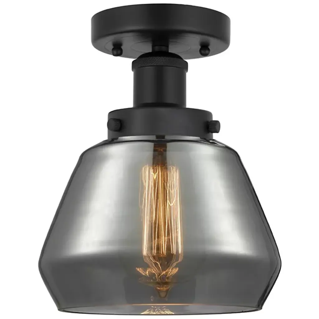 Nouveau Small Cone Led 6 Inch Oil Rubbed Bronze Semi-Flush Mount Ceiling Light In Plated Smoke Glass, Nouveau