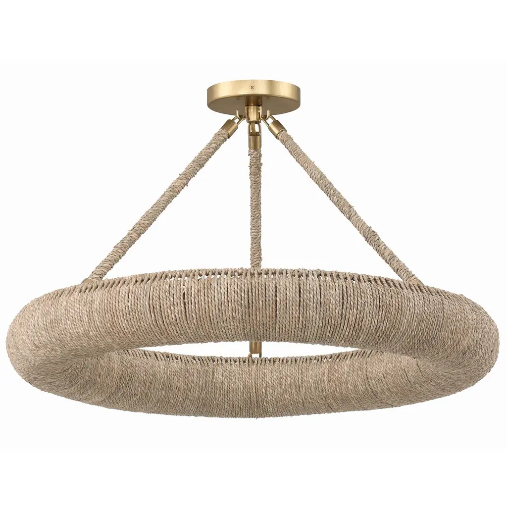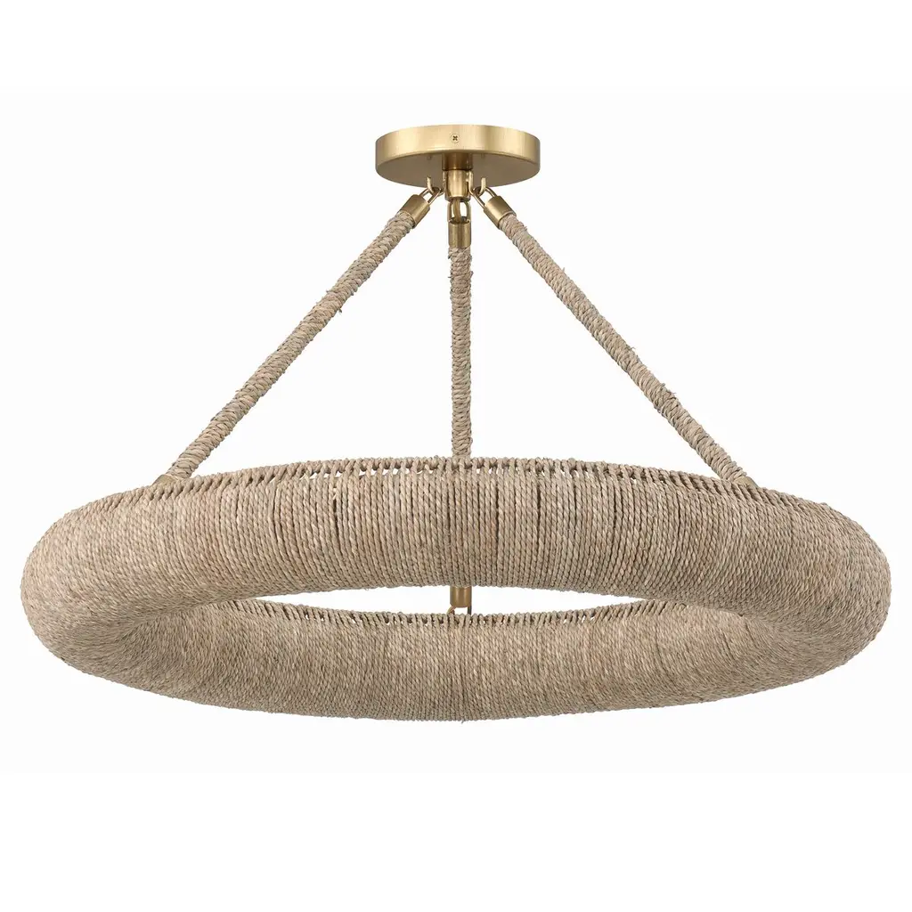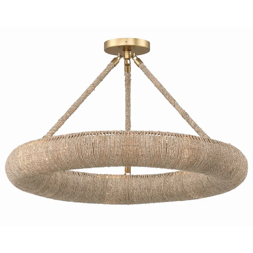 Elevate your space with the Oakley ring chandelier, an artisan masterpiece that blends natural charm with exquisite craftsmanship. With its open-top design, this chandelier infuses a room with a soothing and relaxed ambiance, directing light upward while casting a soft, filtered glow downward. This fixture showcases intricate hand-wrapped details that add depth and character, reflecting the essence of skilled artisans. With dual mounting options, it effortlessly adapts to any space.