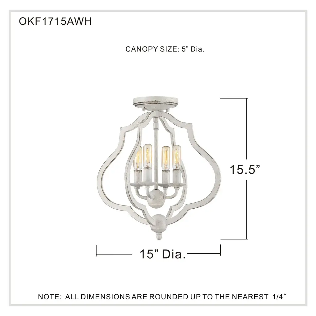 O'keefe 4 Light 15 Inch Antique White Semi-Flush Mount Ceiling Light