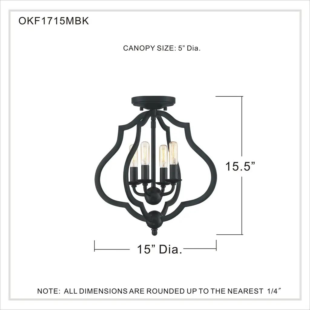 O'keefe 4 Light 15 Inch Matte Black Semi-Flush Mount Ceiling Light
