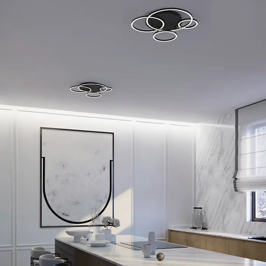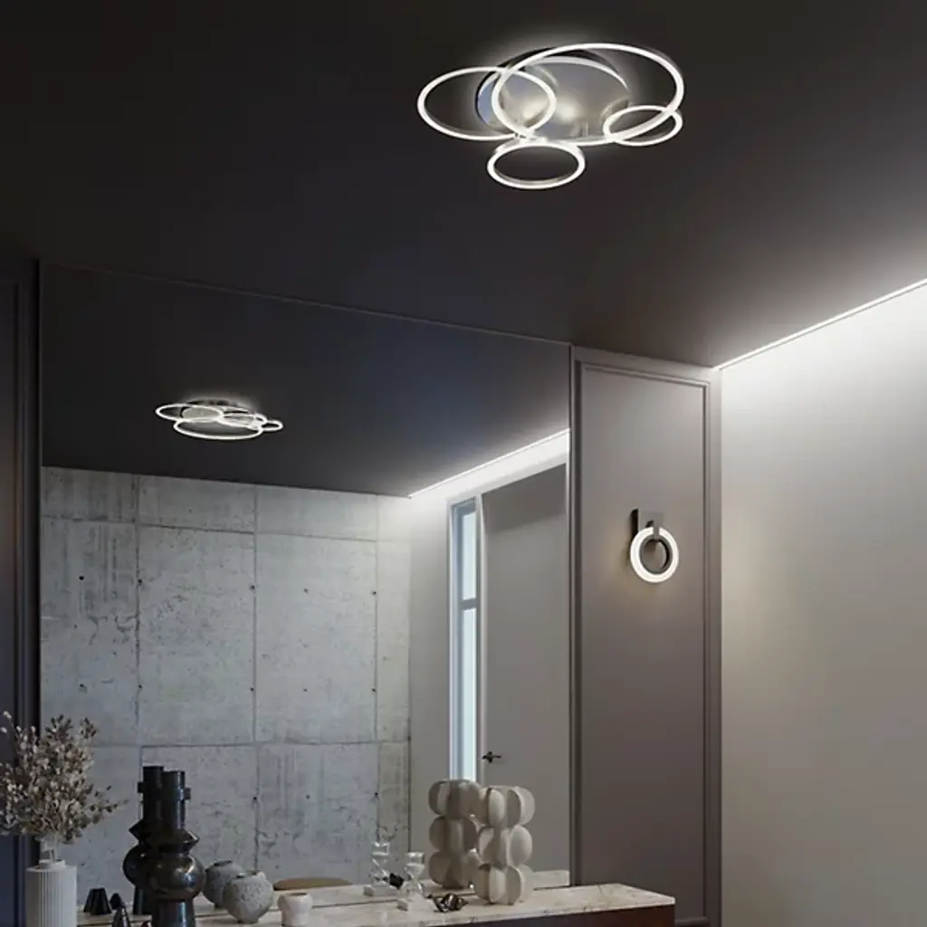 The Orbit LED Semi-Flushmount from AFX Lighting is an eye-catching addition to any space, including hallways, living rooms, or offices. This unique lighting fixture features an irregular shape made of steel and acrylic, offering a modern and transitional style suitable for a variety of settings. Its built-in LED provides ample illumination, making it ideal for both residential and commercial use. Whether in a dining room or bedroom, the Orbit LED Semi-Flushmount seamlessly blends style and function.