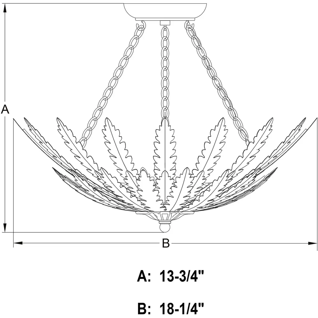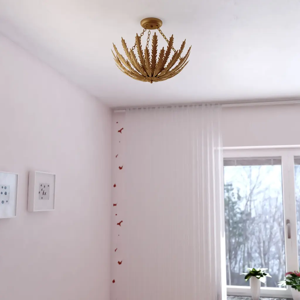Ozette 3 Light 18 Inch Painted Gold Semi Flush Mount Ceiling Light, Leaf Motif