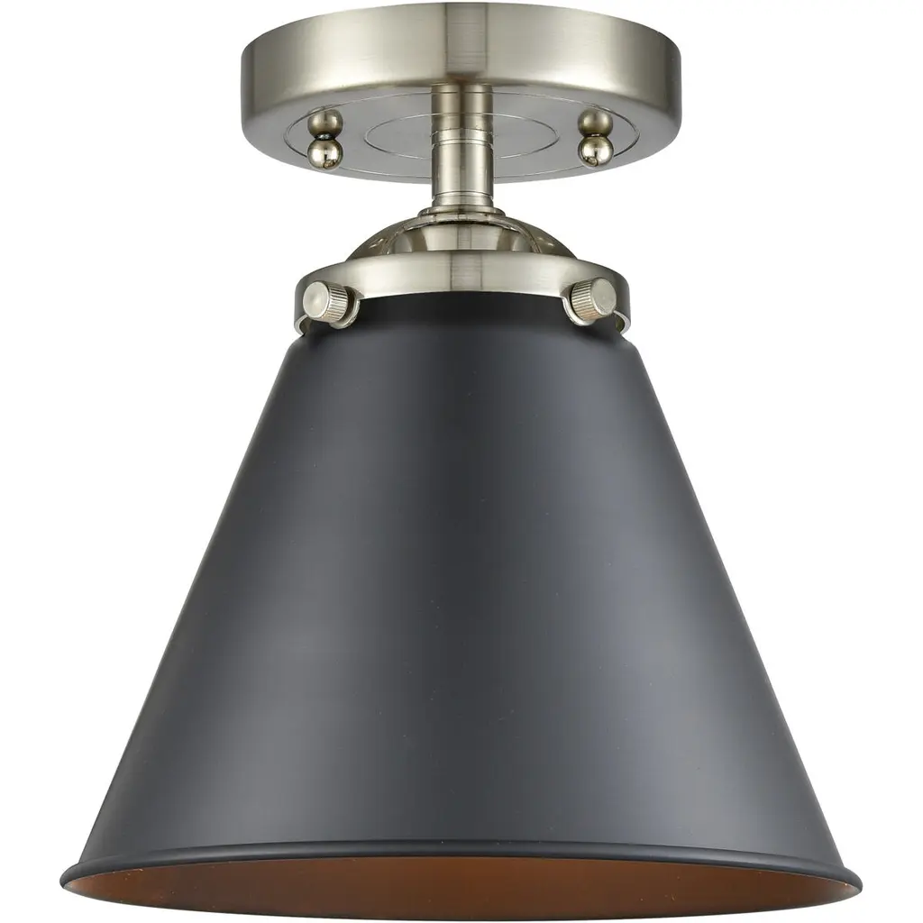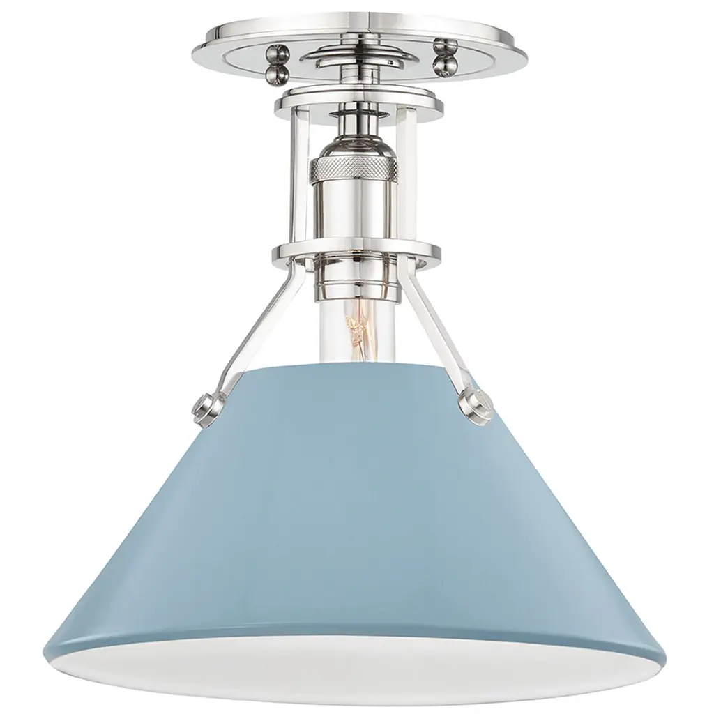 The contrast between the gleaming metal hardware and the painted exterior of the metal shade brings contemporary flair to this retro-chic ceiling fixture. Because it's damp rated, you can use the fixture in your bathroom as well as just about anywhere else in your home.