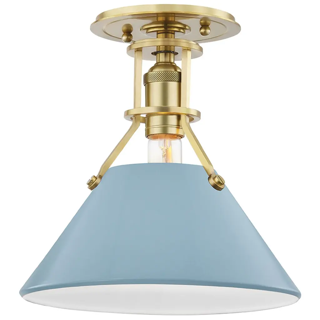 The contrast between the gleaming metal hardware and the painted exterior of the metal shade brings contemporary flair to this retro-chic ceiling fixture. Because it's damp rated, you can use the fixture in your bathroom as well as just about anywhere else in your home.