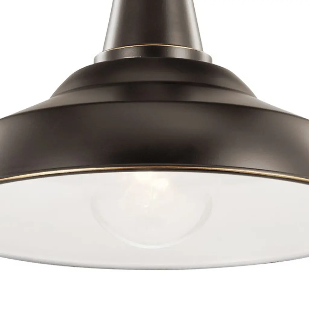 You’ve likely come across a design reminiscent of the Pier Outdoor Pendant / Semi-Flushmount from Kichler, but none come close to matching its quality materials and versatile transforming options. It’s a piece reinvigorating the tried and true industrial pendant. The evocative solid aluminum shade angles outwards in handsome layers. A removable caged frame latches onto the shade in handsome concentric circle design. Hang the piece low with an included downrod or set it close to your ceiling as a tight semi-flush mount. A flip of the switch produces generous illumination heightened by the white hue of the shade’s interior.