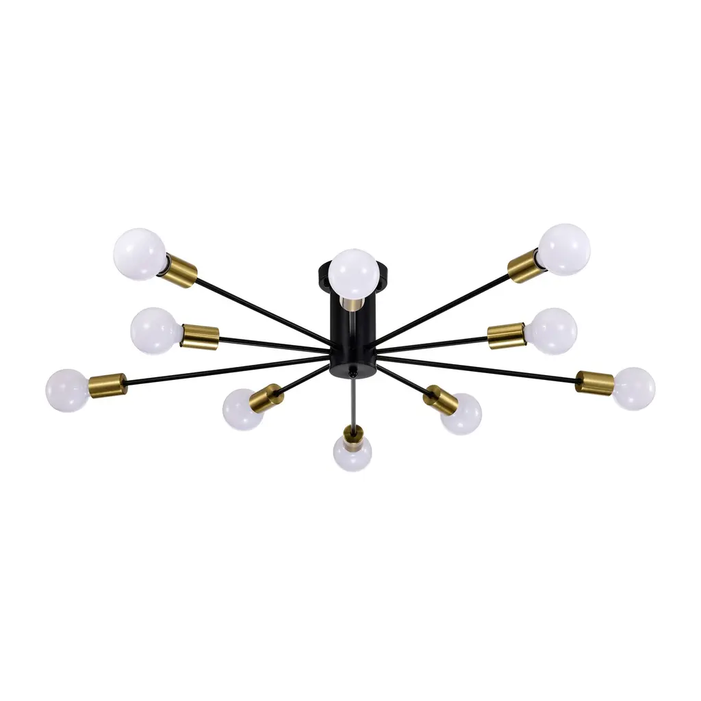 The semi-flush mount ceiling light showcases a chic metal finish that complements a variety of decor styles. Its 10-lamp baton style features staggered rods extending from a central mount, creating a dynamic, asymmetrical arrangement. The polished metal surface reflects light beautifully, casting a sophisticated and inviting glow throughout the room. This design blends modern elegance with practical illumination, making it an ideal choice for enhancing both style and ambiance in contemporary and transitional spaces.Features:Dimensions: