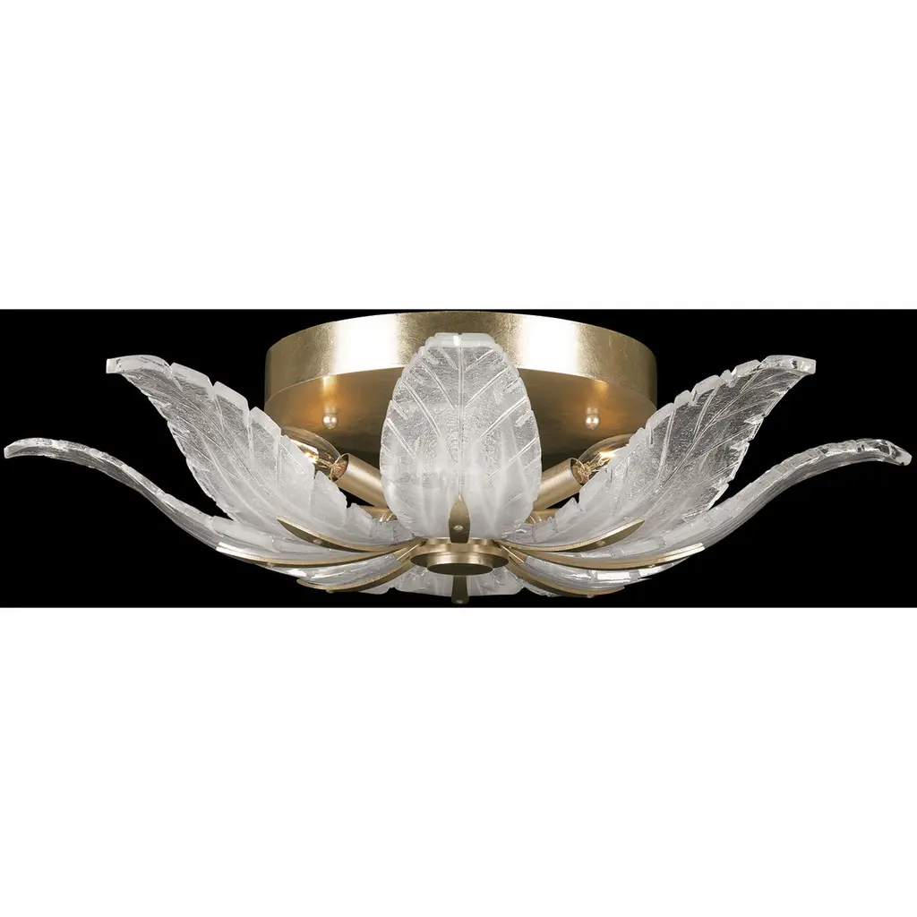 Interweaving signature Fine Art studio glass with the noble element of our handmade metal fabrication, this silver leaf semi flush combines classical lines with a contemporary glass design. Each plume is handblown and sculpted with a translucent mixture