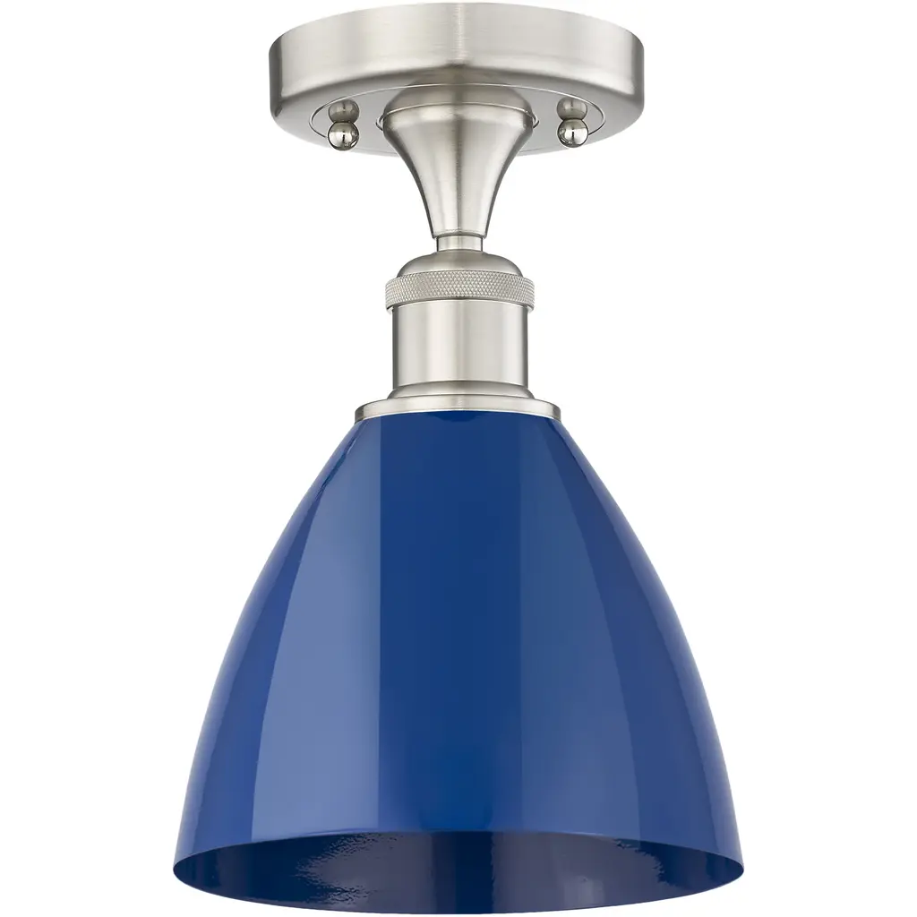 Plymouth Dome - 1 Light 8" Semi-Flush Mount - Antique Brass Finish - Blue Shade