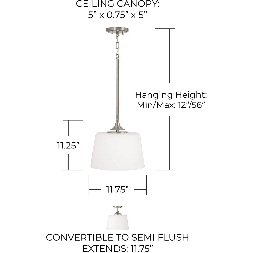 Presley 1 Light 11.75 Inch Brushed Nickel Semi-Flush Mount Ceiling Light, Convertible Dual Mount