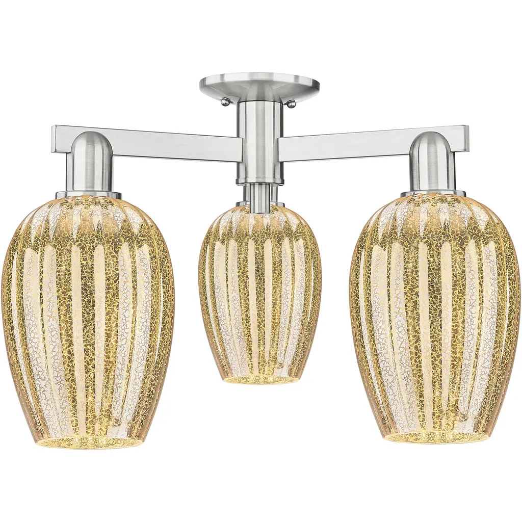 Preston 3 Light 23.75 Inch Brushed Brass Semi-Flush Mount Ceiling Light In Mercury Glass