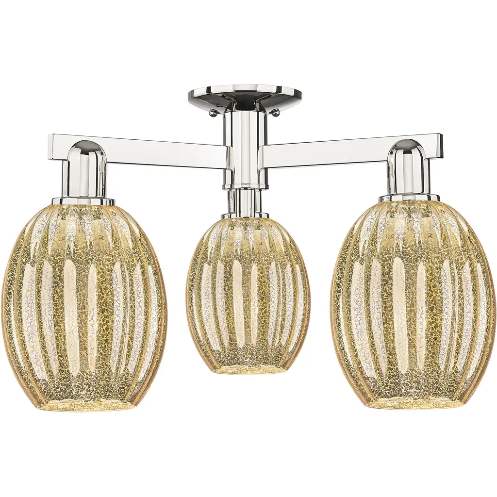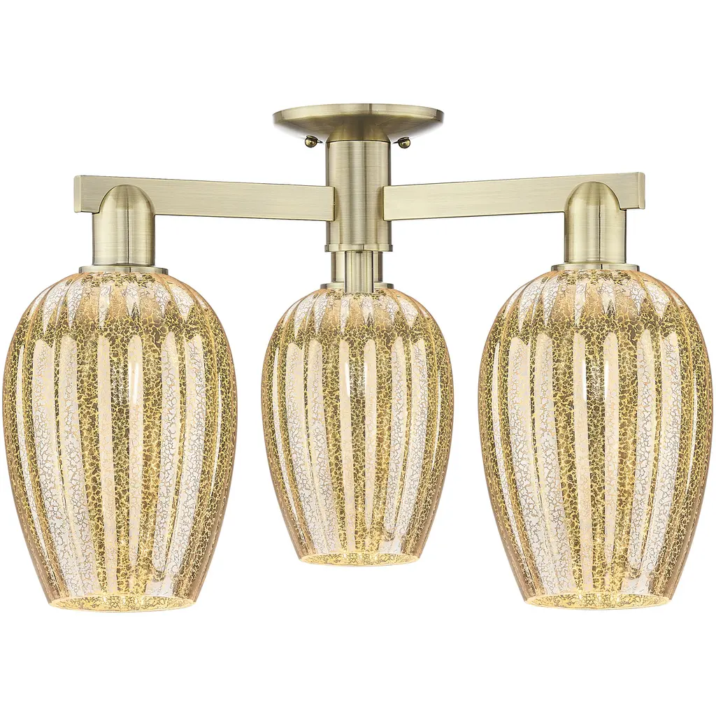 Preston 3 Light 24.25 Inch Antique Copper Semi-Flush Mount Ceiling Light In Mercury Glass