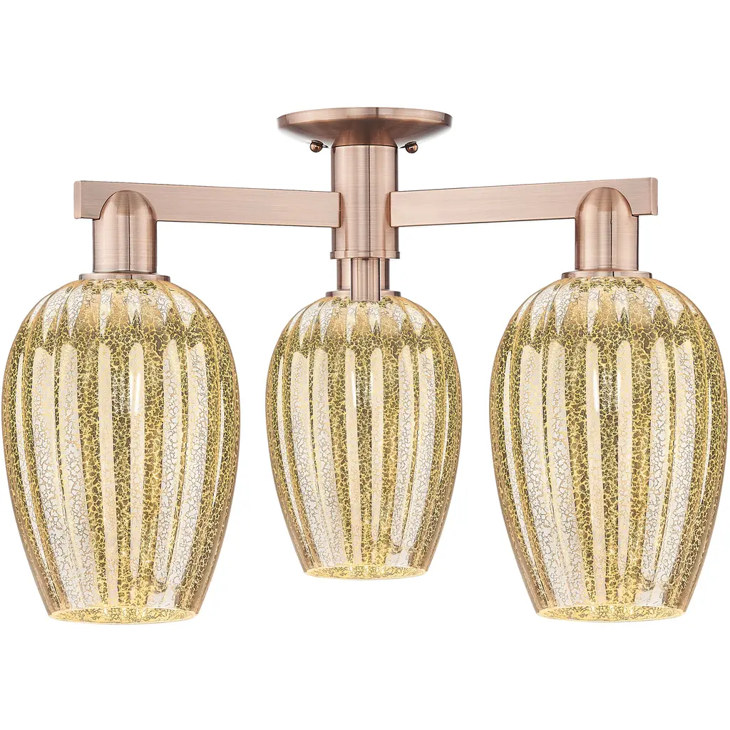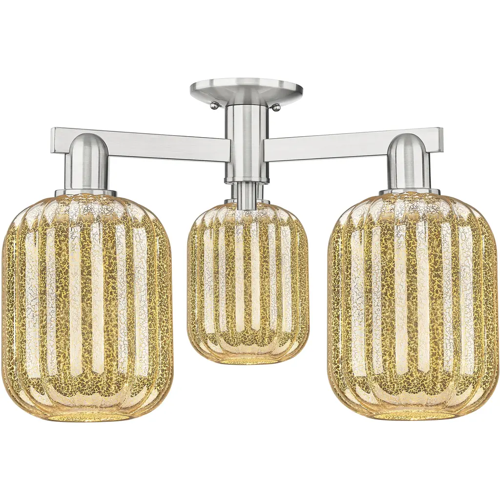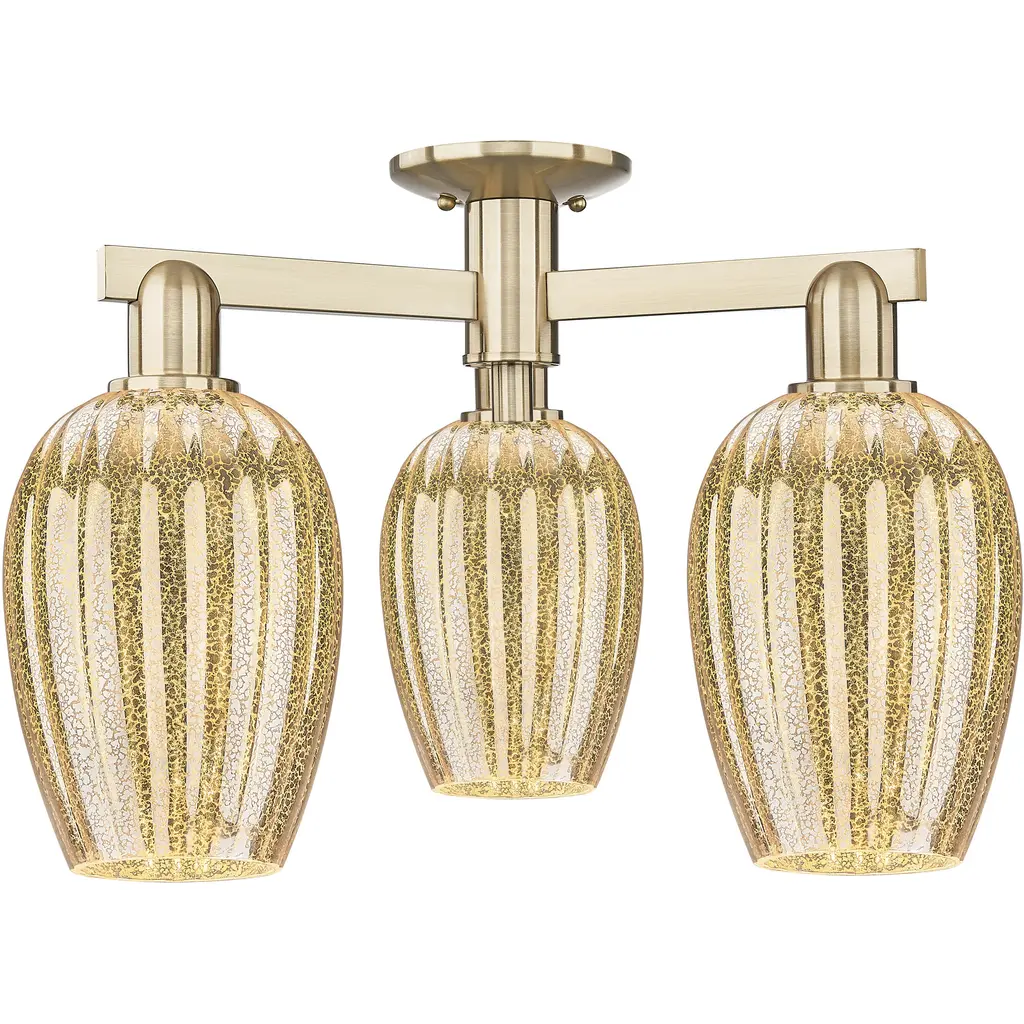 Preston 3 Light 24.25 Inch Brushed Brass Semi-Flush Mount Ceiling Light In Mercury Glass