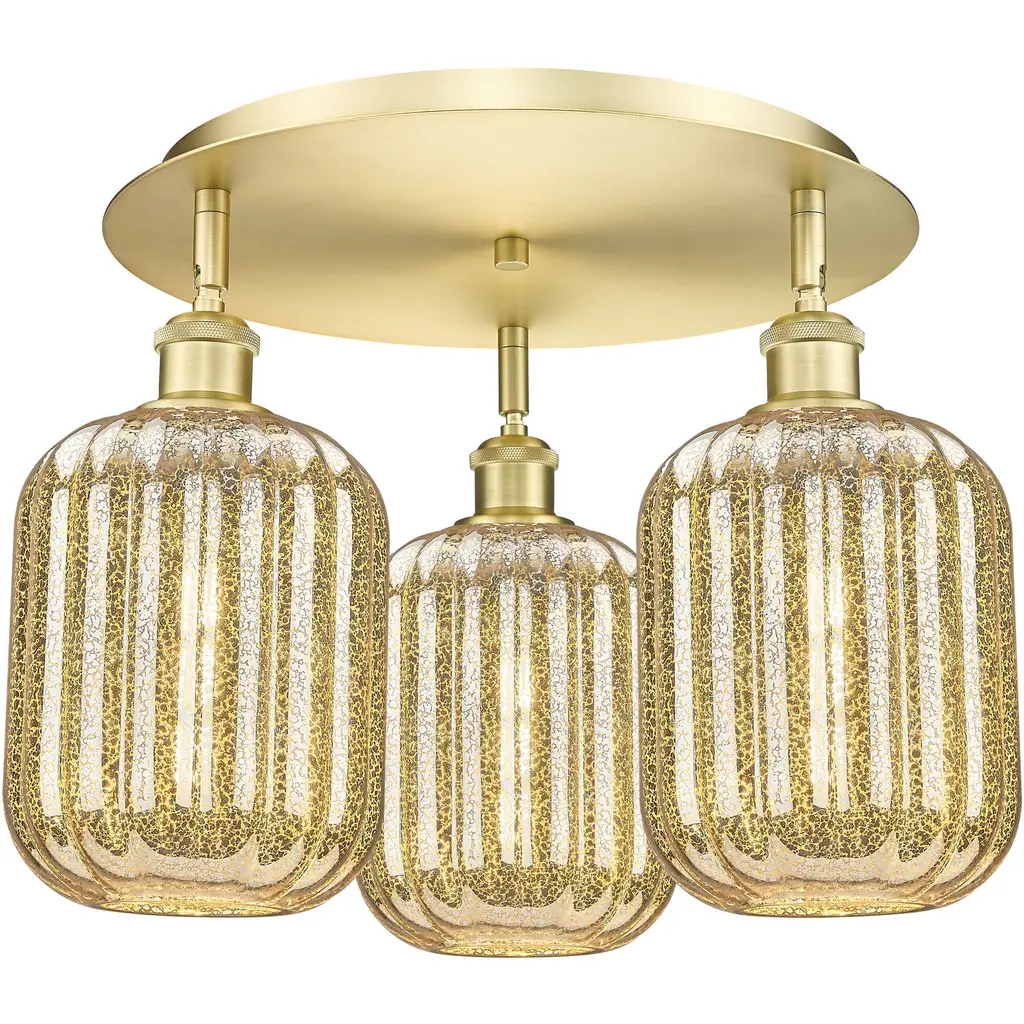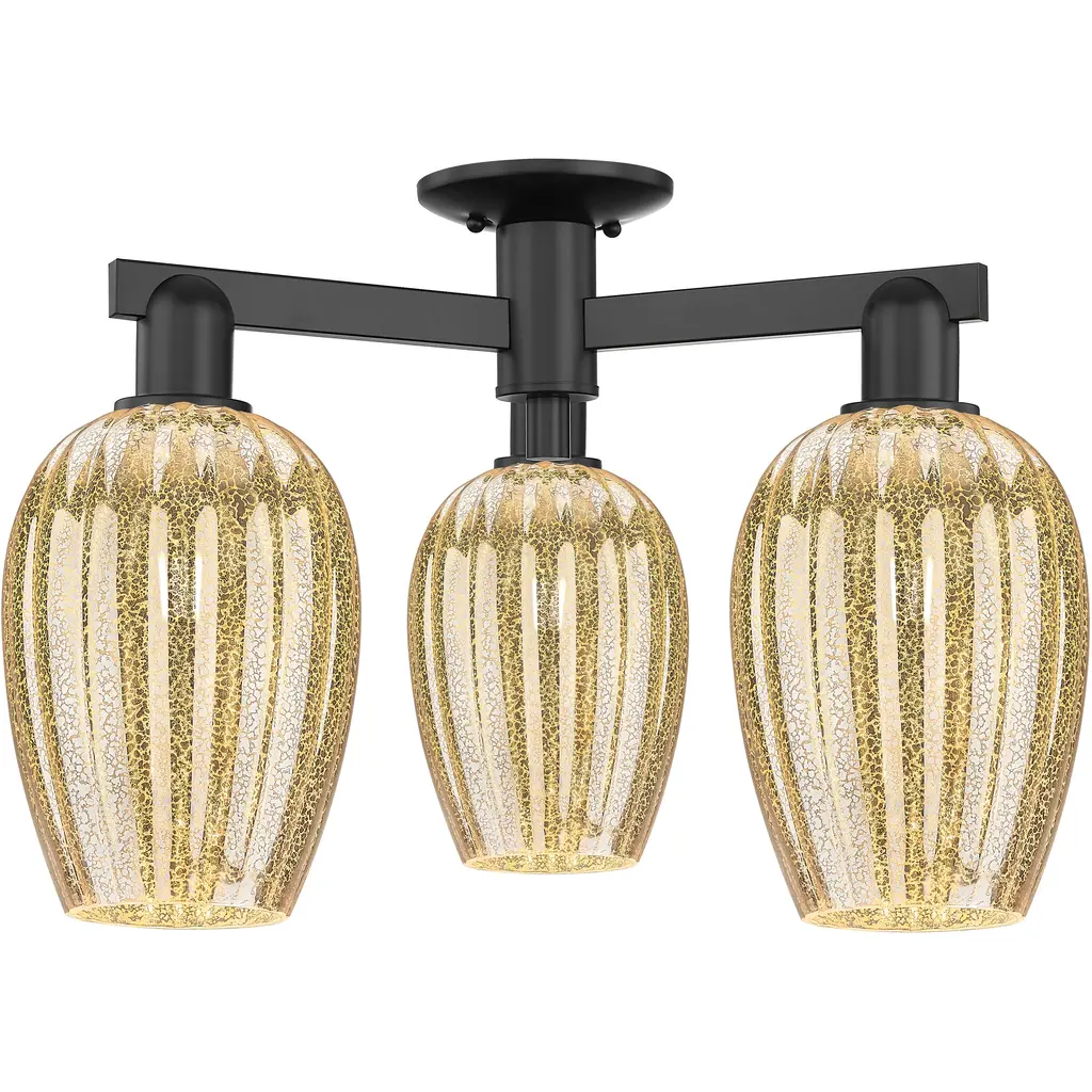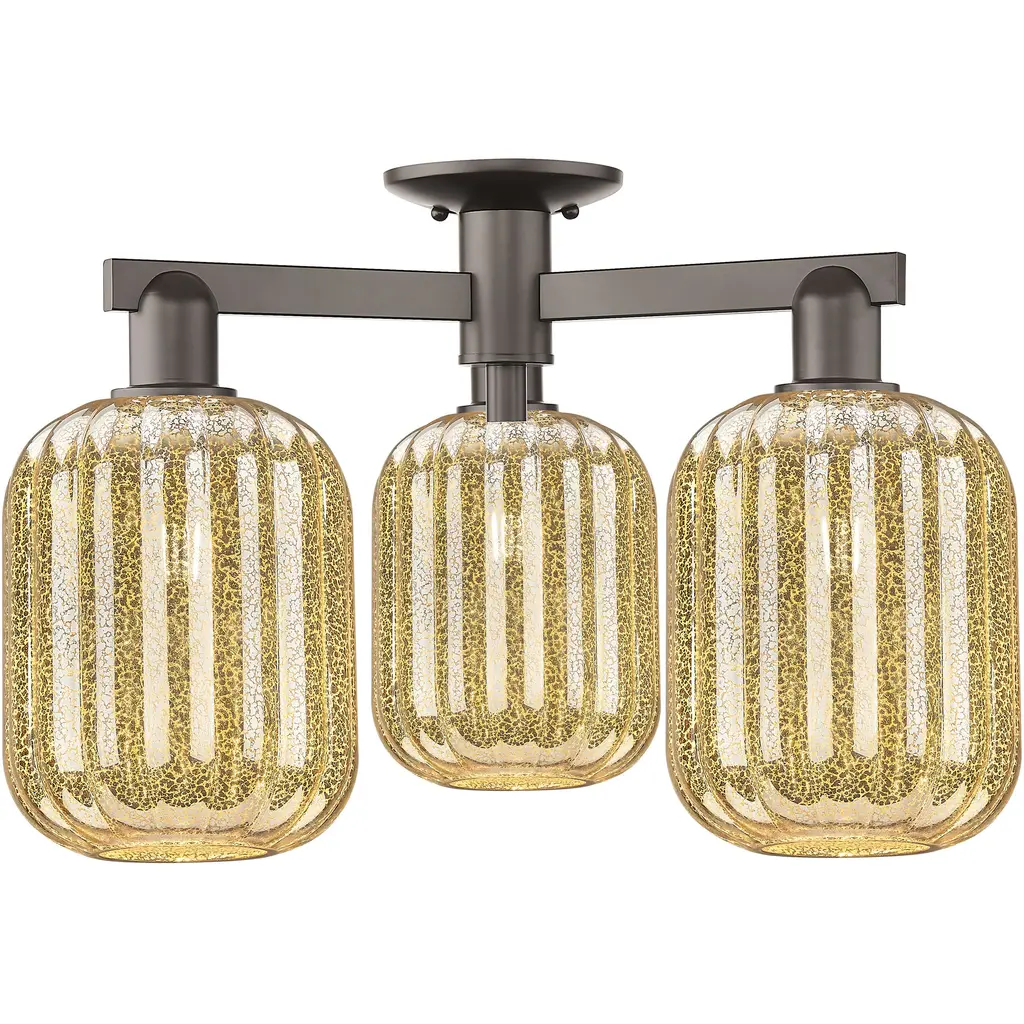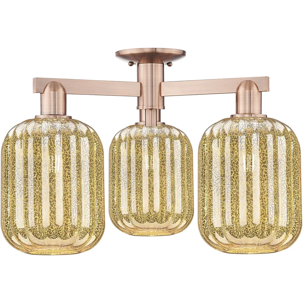 Preston 3 Light 24.25 Inch Brushed Brass Semi-Flush Mount Ceiling Light In Mercury Glass