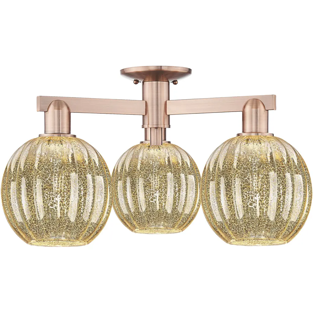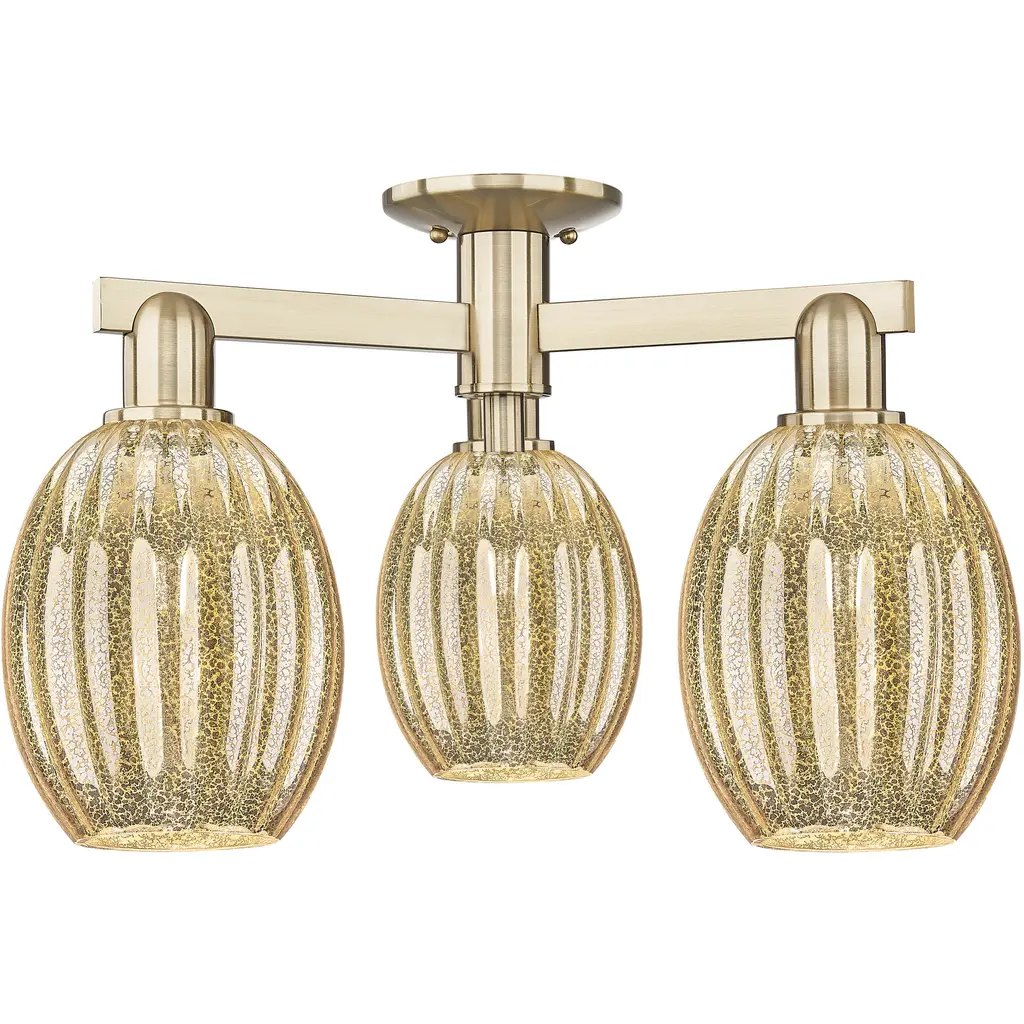 Preston 3 Light 24.5 Inch Brushed Satin Nickel Semi-Flush Mount Ceiling Light In Mercury Glass