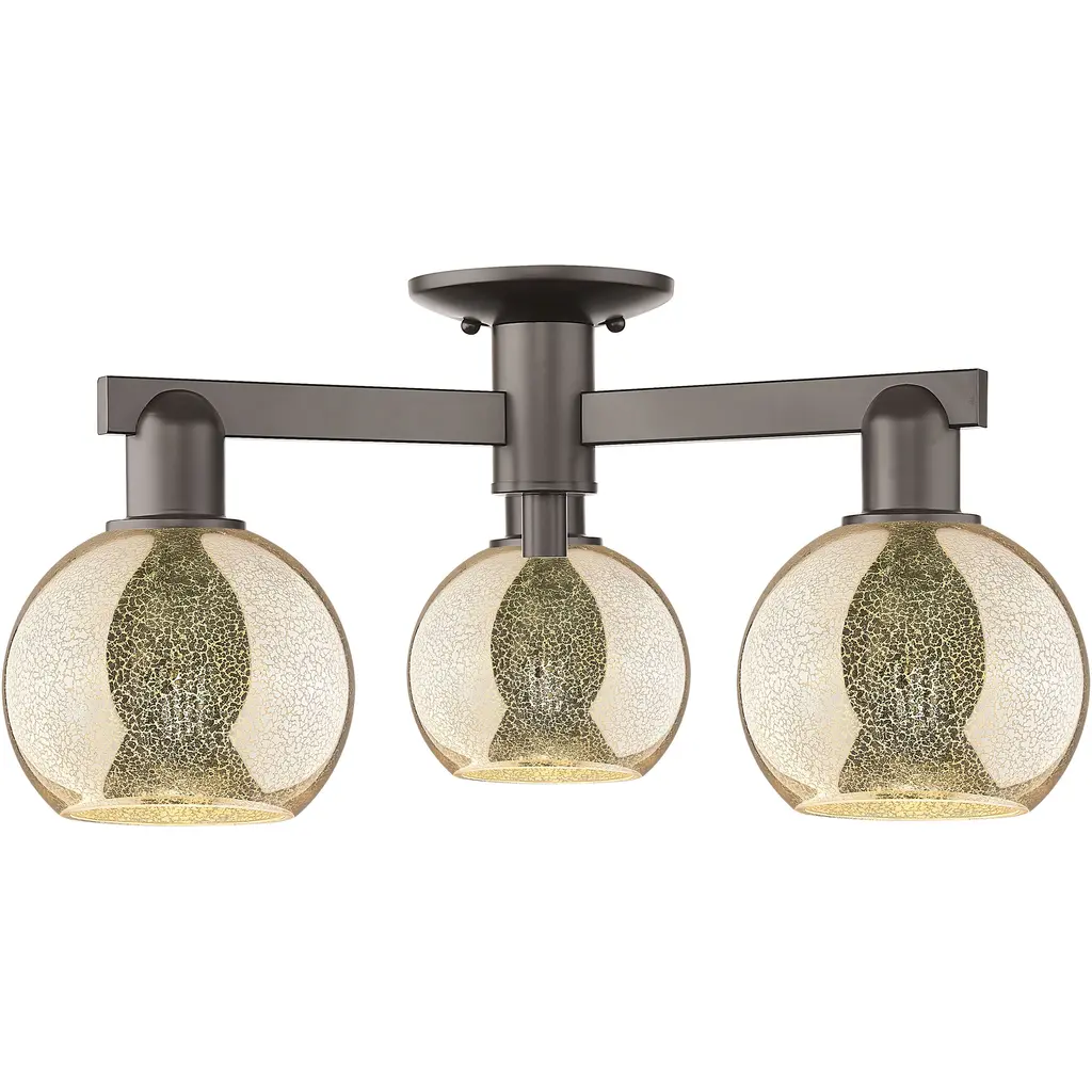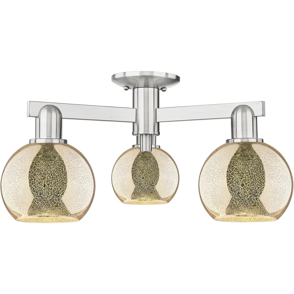 Preston 3 Light 24.5 Inch Polished Nickel Semi-Flush Mount Ceiling Light In Mercury Glass