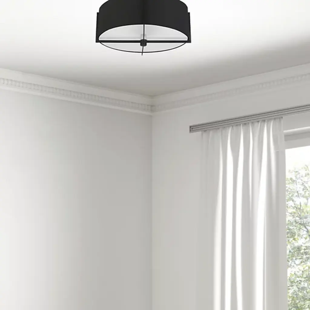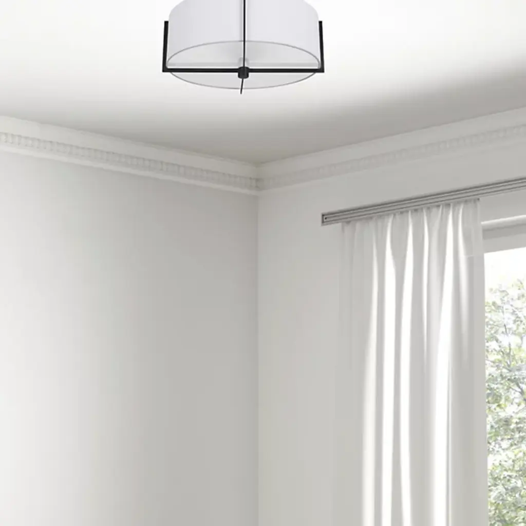 Presented by Dainolite, the Preston Semi-Flushmount offers a smooth silhouette with contrasting detail that draws the eye. It makes a statement but blends easily with contemporary, ultra-modern, and minimalist décor schemes. The look is based on a fabric drum shade with a relatively narrow profile, with a contrasting metal frame that holds the shade in place with strong horizontal and vertical lines, while a glass diffuser creates ambient lighting.