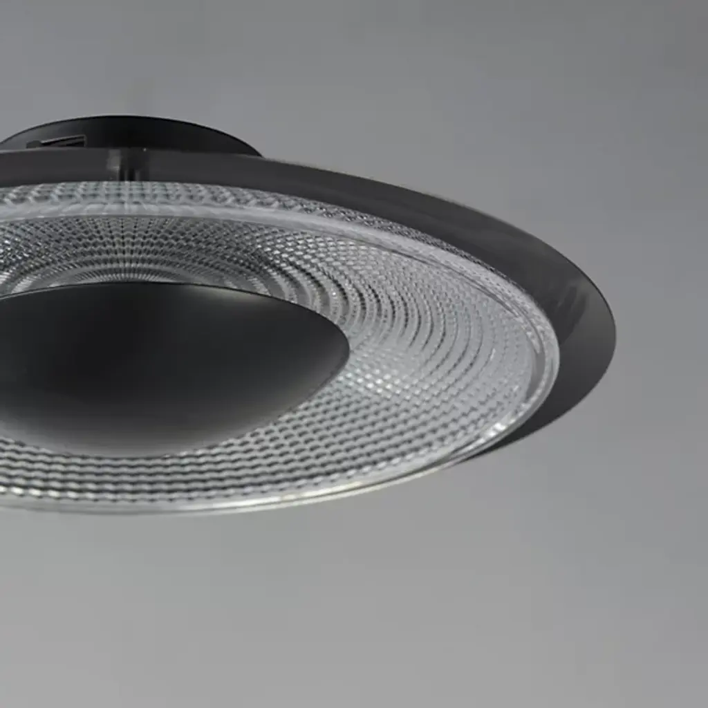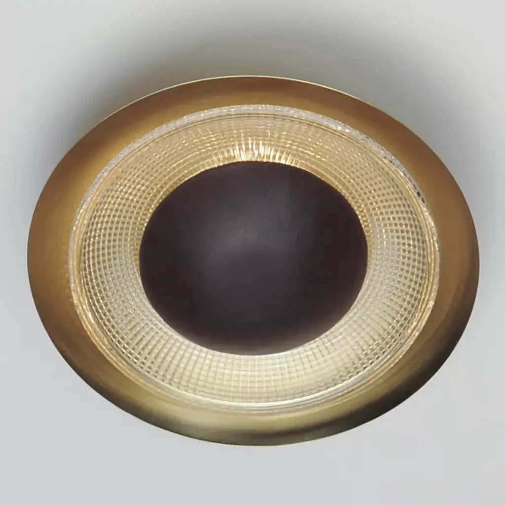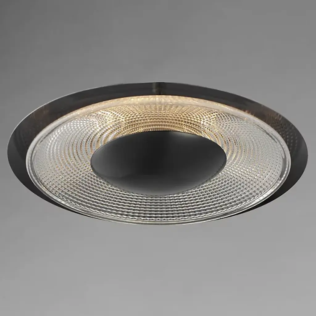 Nestled within a timeless Mid-Century metal shade, the Prismatic LED Semi Flushmount from Studio M showcases a secondary thick glass shade adorned with captivating prismatic patterns, casting an enchanting iridescent glow. A dedicated LED light source is emplaced within, ingeniously designed to minimize glare while delivering ample illumination below the fixture. Accents add a rustic touch, contrasting with cutting-edge LED technology, marrying classic Mid-Century Modern design with contemporary innovation.