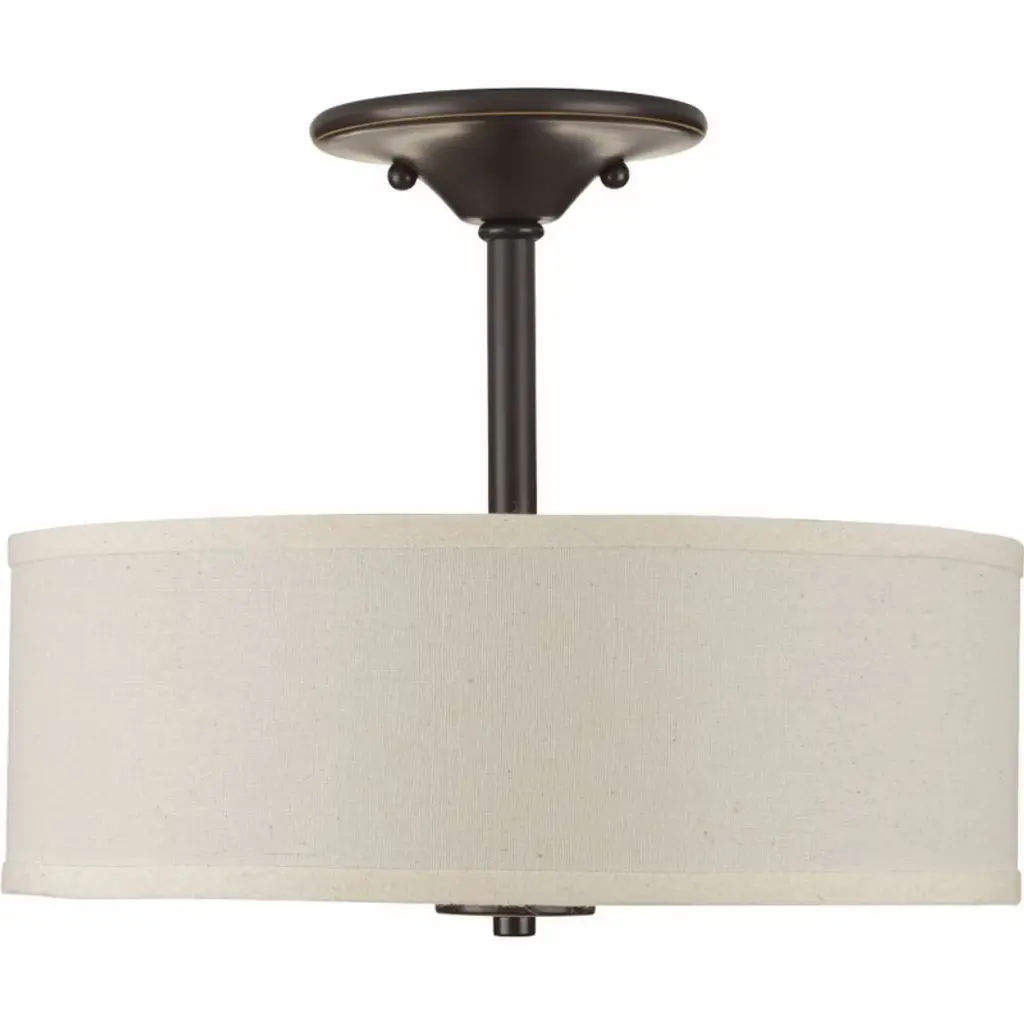 Progress Lighting, Inspire Collection, 2-light Semi-flush Mount, Antique Bronze, Etched Glass With Linen Shade