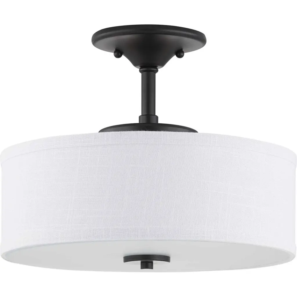 Progress Lighting, Inspire Collection, 2-light Semi-flush Mount, Satin Brass, Summer Linen Shade