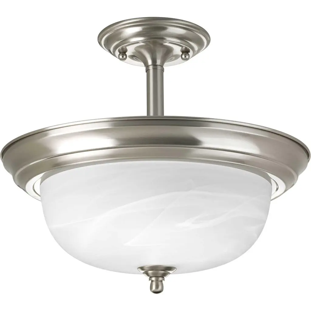 Progress Lighting, Melon Collection, 2-light Semi-flush Mount, Brushed Nickel, Dome Shaped Glass