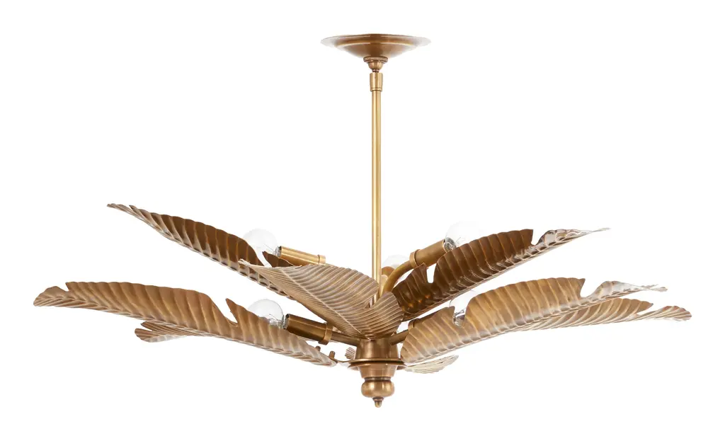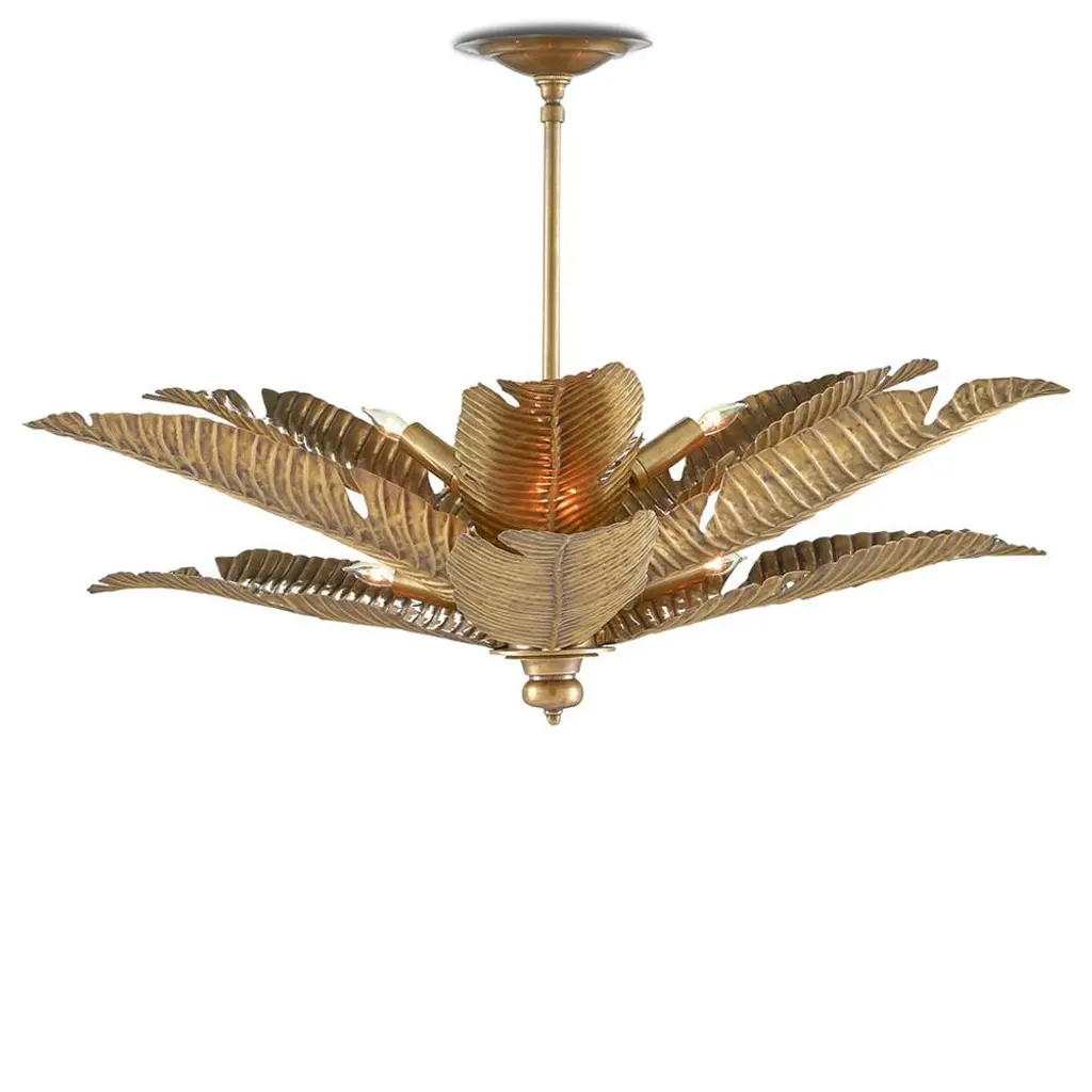 Pyro Hollywood Regency Gold Iron Black Marble Tropical Leaf Semi Flush Mount