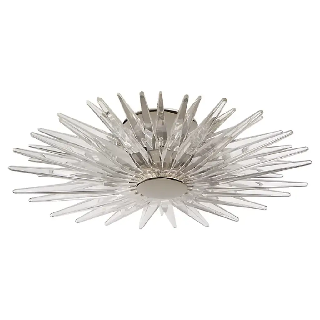 Add a touch of whimsical elegance to your dining room or eat-in kitchen with the Quincy Semi-Flushmount by Visual Comfort Signature, formerly known as Visual Comfort, The striking clear acrylic accents shoot outward to create a sunburst-inspired effect and reflect the light source in a captivating manner. A variety of upscale finishes also allows you to choose a look that best matches your established motif, making this energy-efficient fixture a great option for any home décor enthusiast.