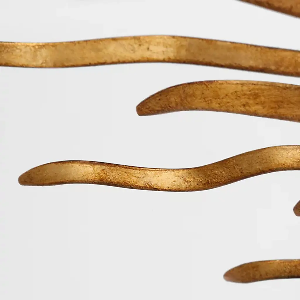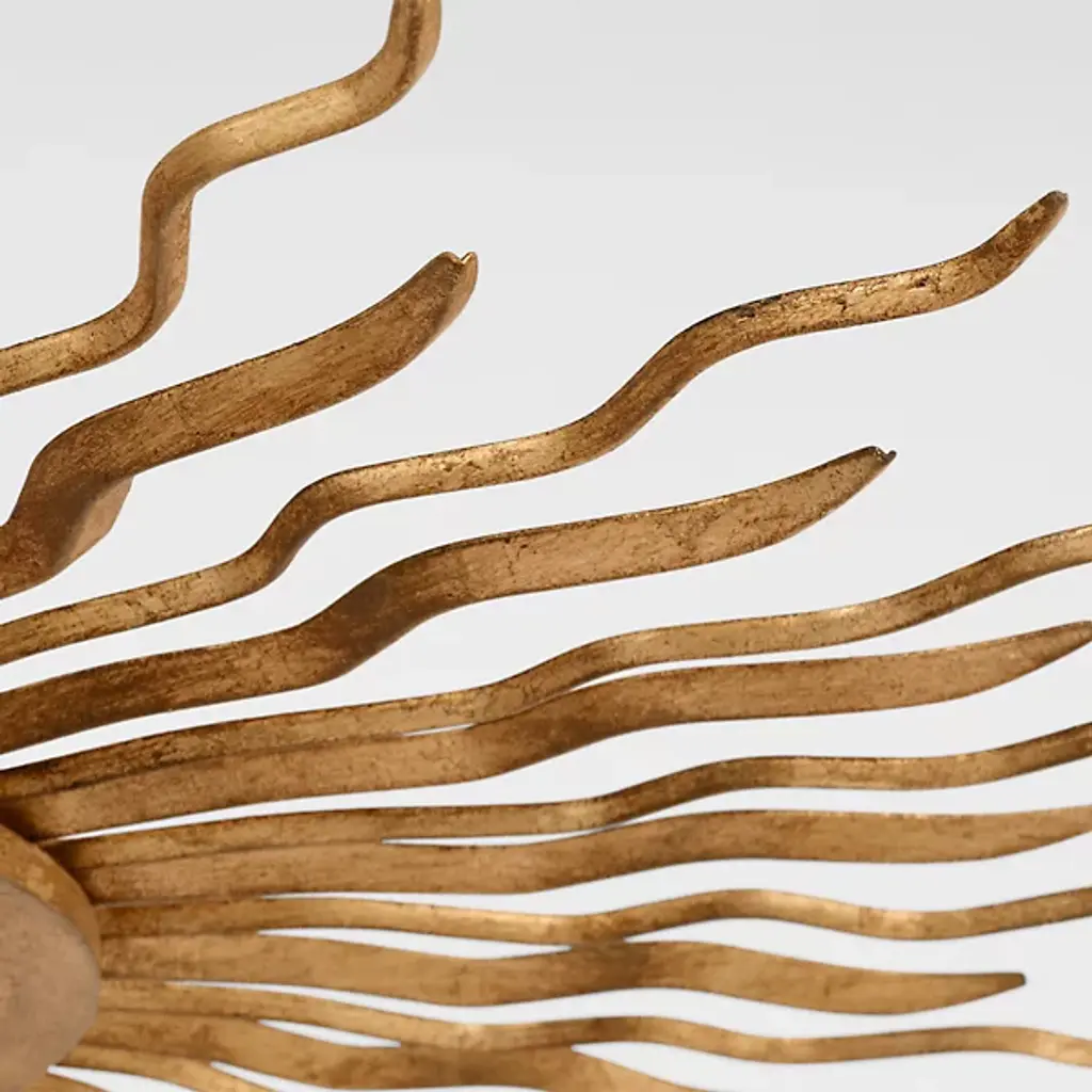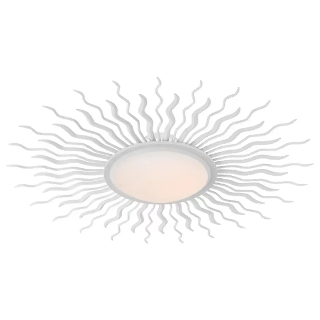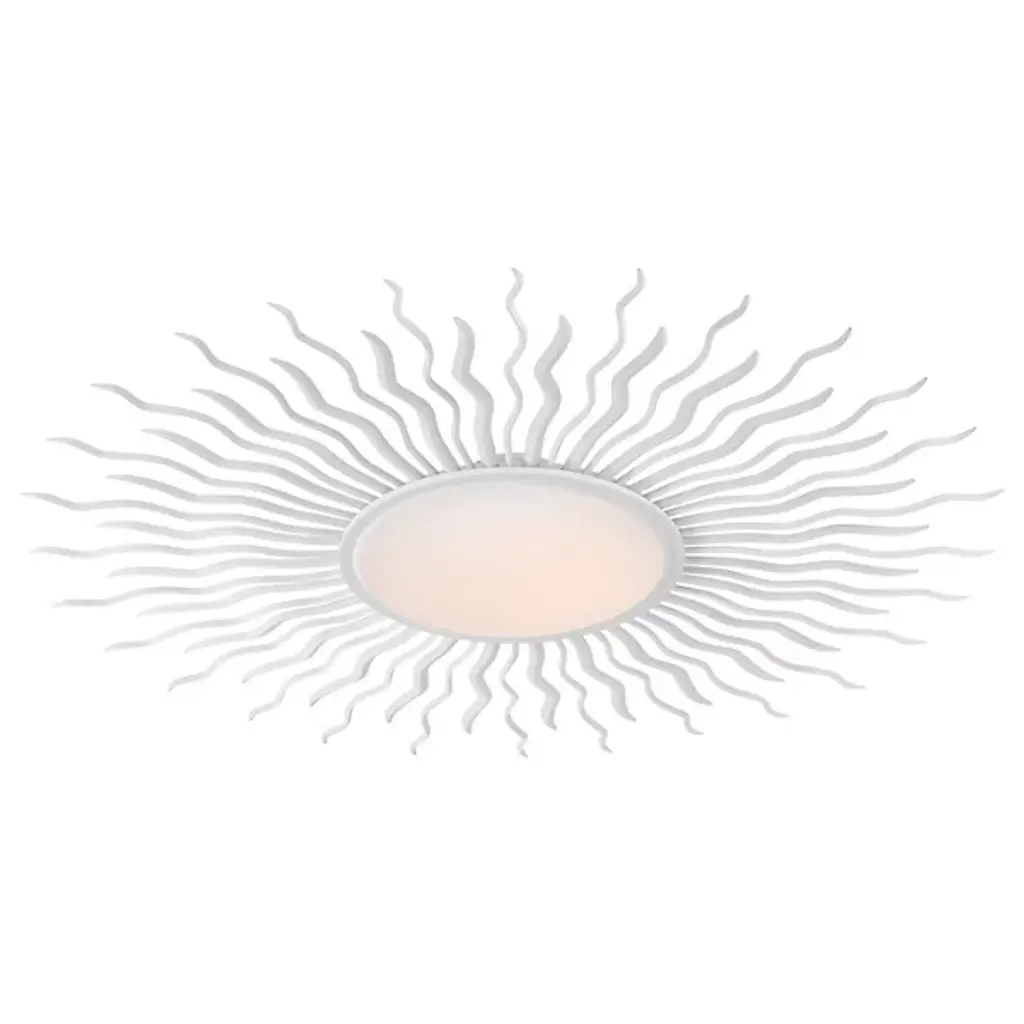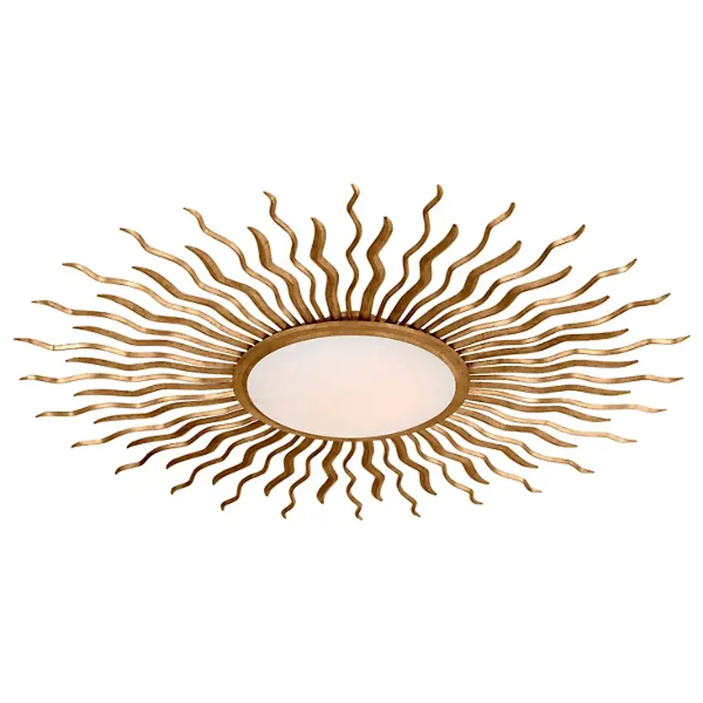 The Re LED Semi-Flushmount from Visual Comfort Signature radiates energy through its sculptural sunburst design. Undulating steel rays extend outward from the central glass diffuser, creating dynamic patterns on surrounding surfaces. Designer Suzanne Kasler employs LED technology to provide efficient radiance while maintaining the fixture's artistic impact. Each ray of this semi-flushmount is carefully shaped, allowing it to become the center of attention in any room or hallway.