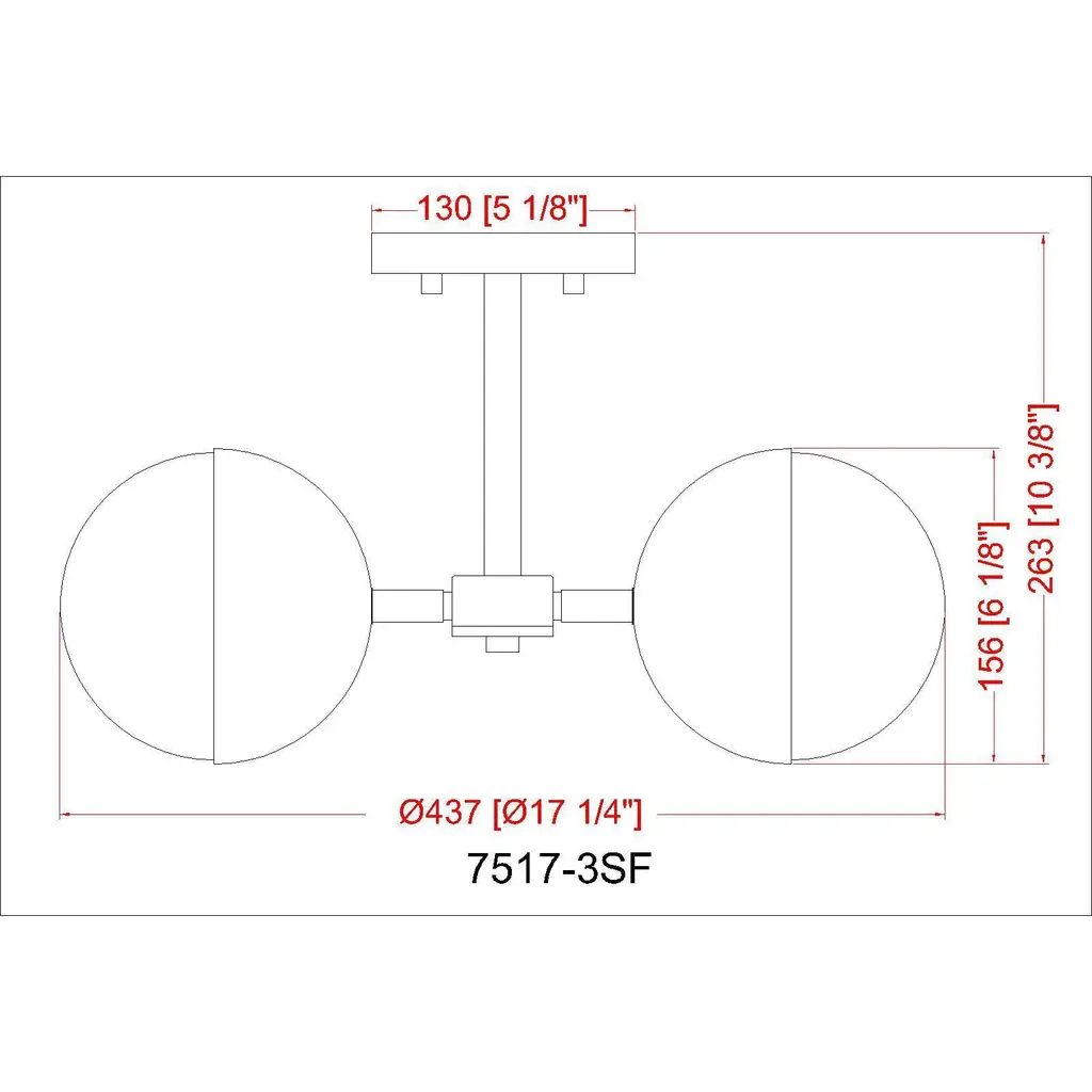 Realm Sphere 3 Light 17.25 Inch Modern Gold Semi Flush Mount Ceiling Light