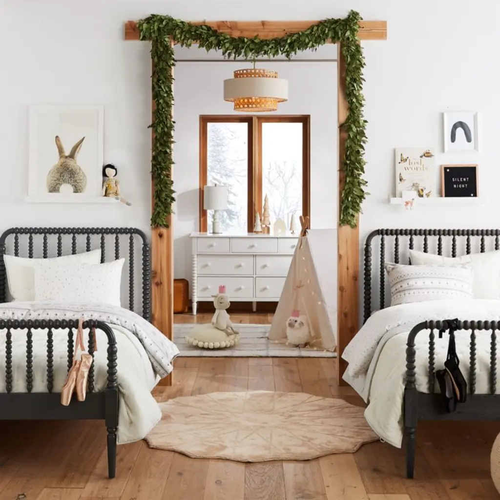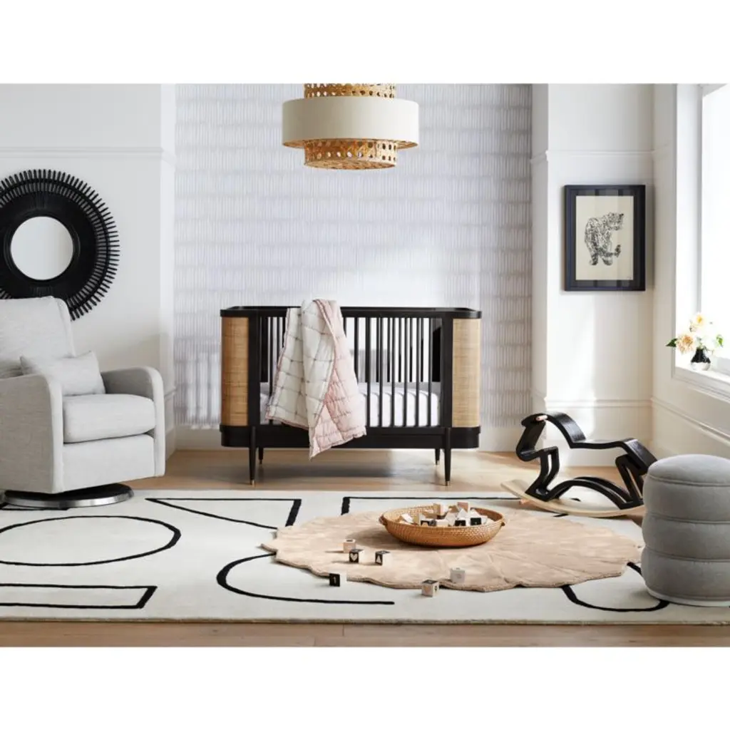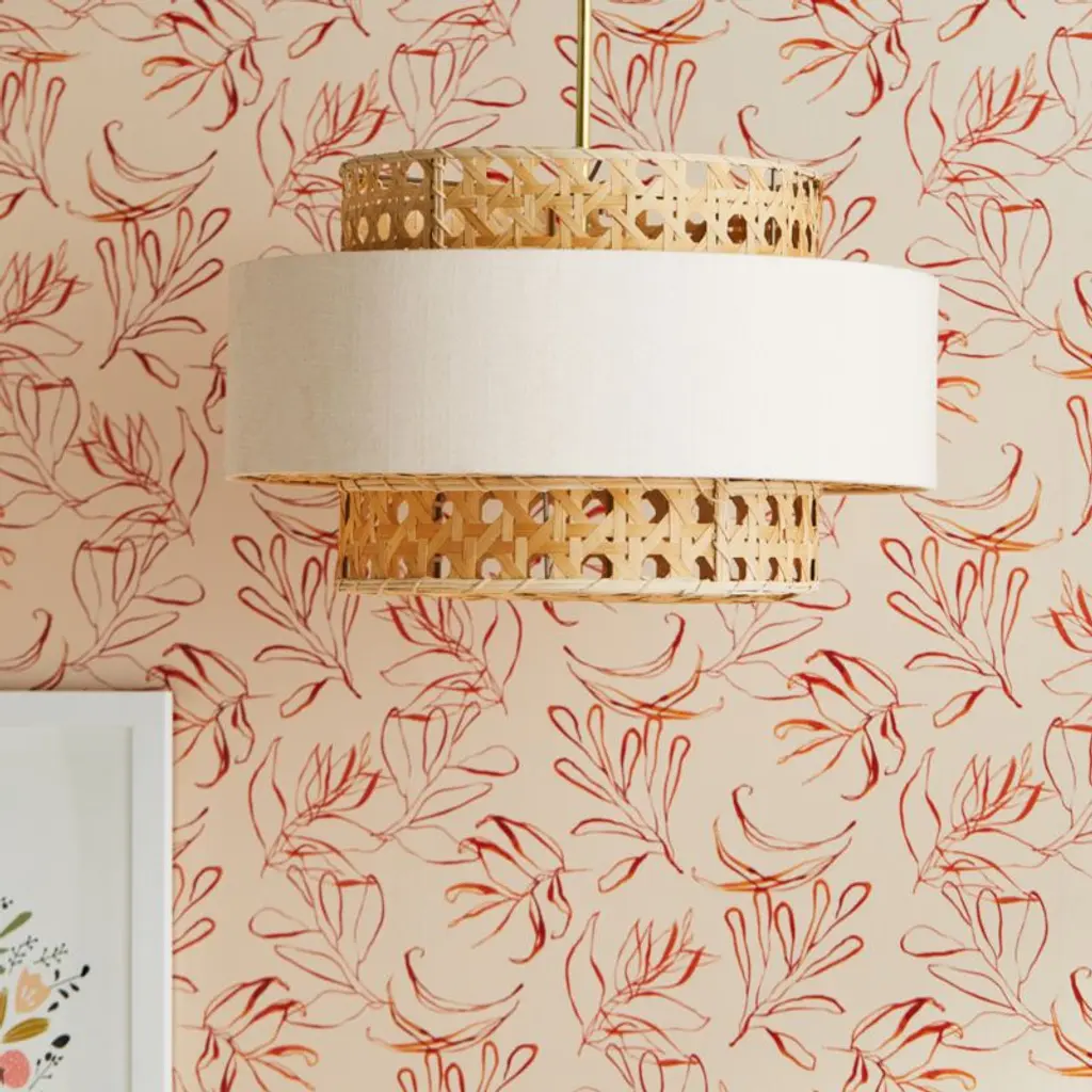 With an eye-catching natural rattan frame and neutral linen shade, plus a glimmering brass rod and base, our Reese Pendant Light is a trend-forward statement piece. Chic enough for your nursery, shared family spaces or cool big kid rooms, this mixed material fixture has a woven drum shape encircled by a unique rounded shade. Its low-profile design works especially well in bedrooms with bunk beds or loft beds. The intricate, lattice-like weave brings in the warmth, texture and beauty of natural materials, while the calming, soft natural linen fabric and shimmery brass accents contrast gorgeously.