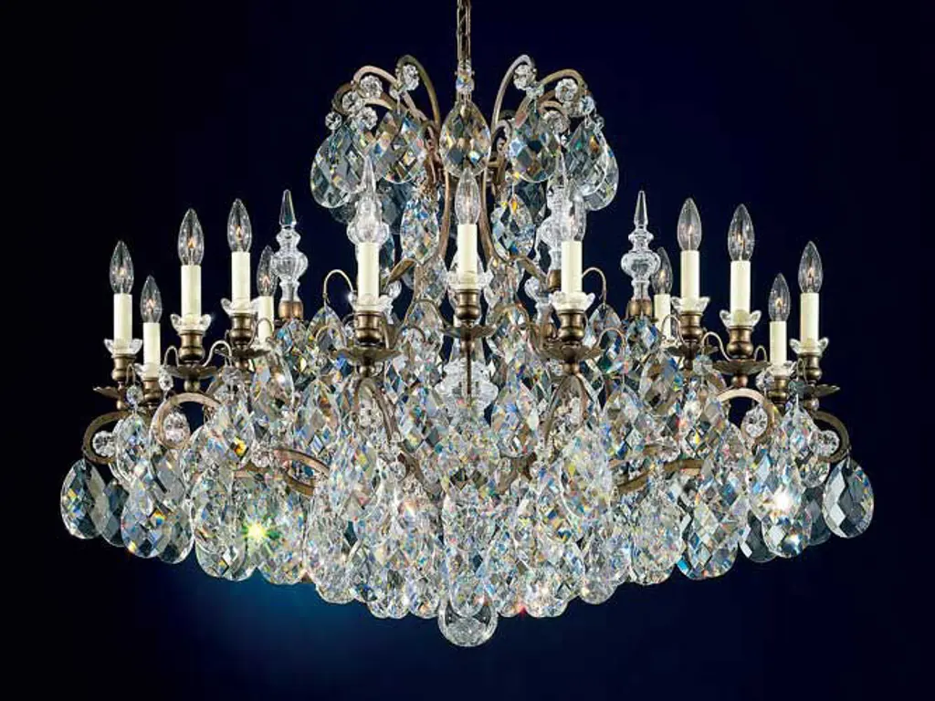 Recalling the glorious opulence of Baroque chandeliers with its open frame, lyre patterns and bouquet tops, Renaissance is an homage to the seventeenth-century court of King Louis Xiv. Our interpretation is boldly contemporary.