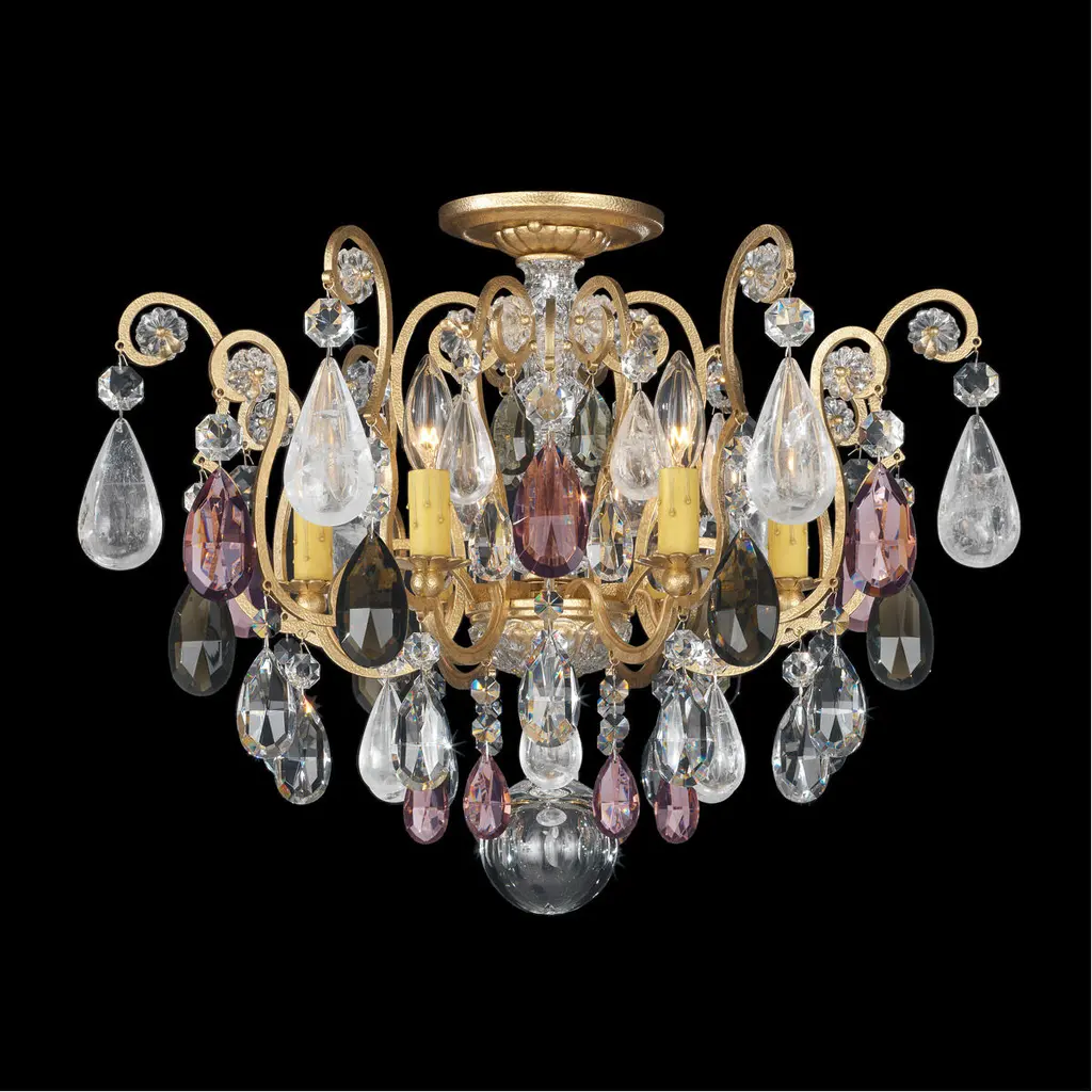 Renaissance Rock Crystal 6 Light Black Semi-Flush Mount Ceiling Light In Rock Olivine And Smoke