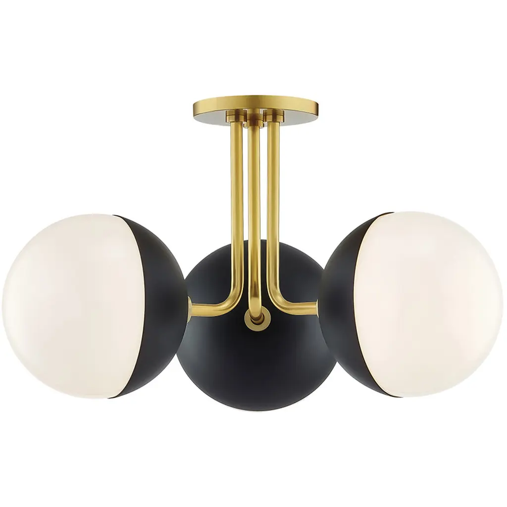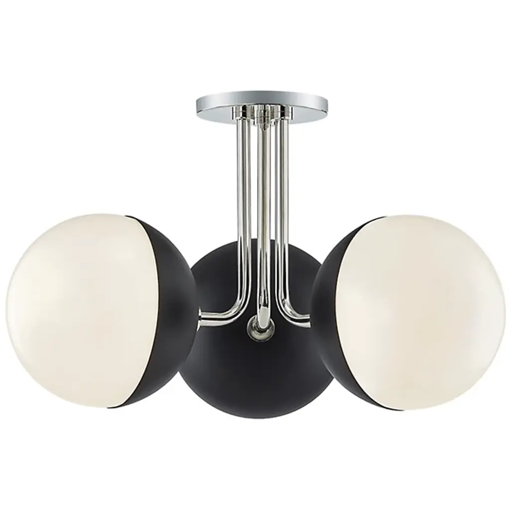 A statement-maker for a modern home. Mitzi by Hudson Valley's Renee Semi-Flushmount will make a stunning addition to any room. Complete with a Steel frame and spherical Glass shades, this ceiling mount has a modern sculptural inspiration that's sure to liven up contemporary decor and furnishings. The shade diffuses light to create a flattering, warm lighting effect that will brighten up the room. Mount it in the foyer, hallway, living room or bedroom and let it accentuate your decor with ease. Its easy elegance and sophisticated shape are sure to blend right in.