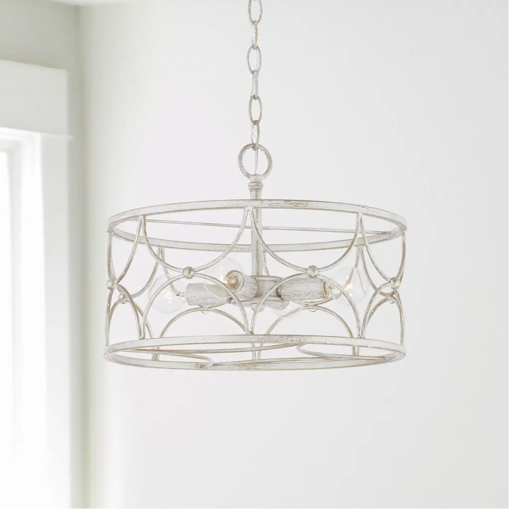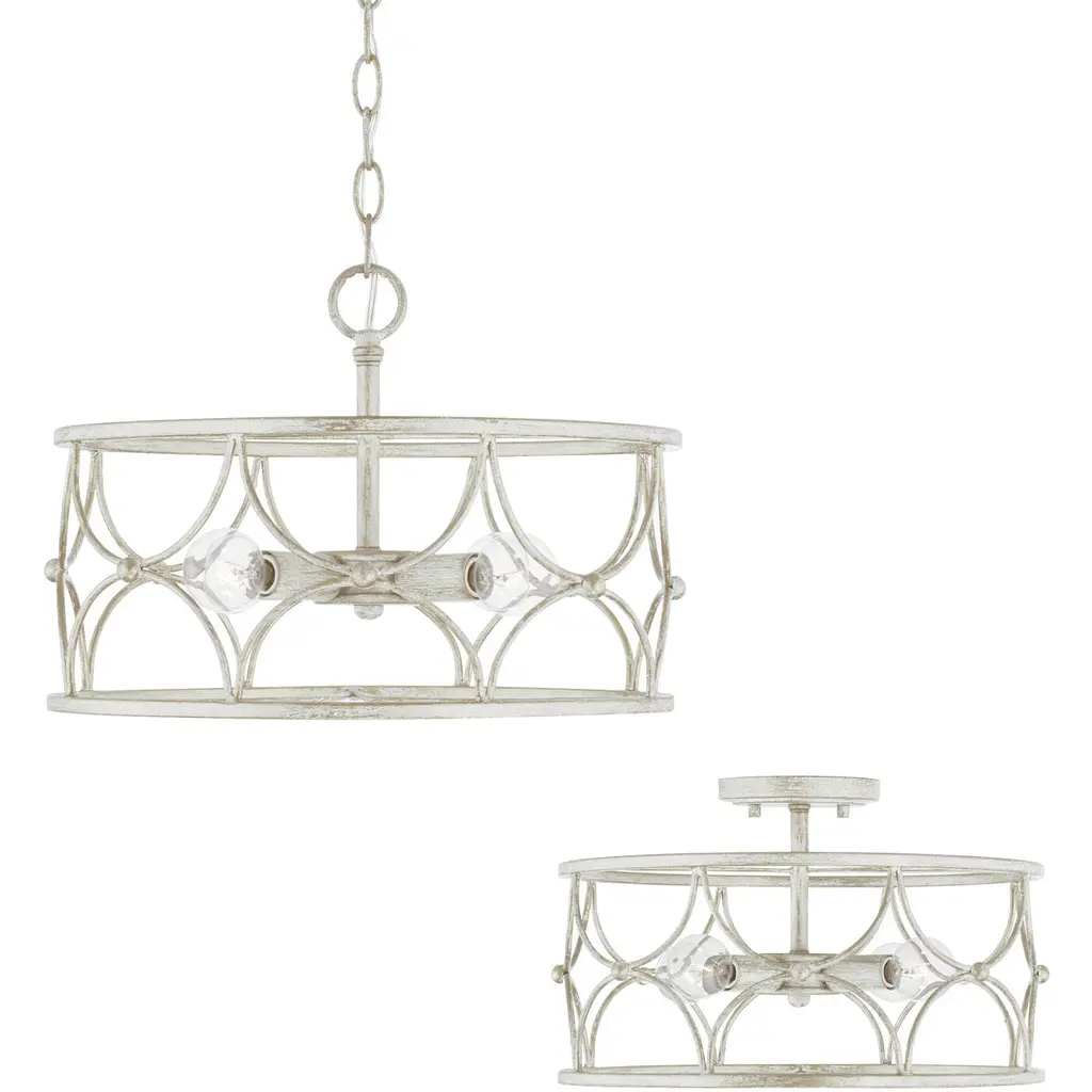 Ricci 4 Light 15.25 Inch Winter White Semi-Flush Mount Ceiling Light, Convertible Dual Mount