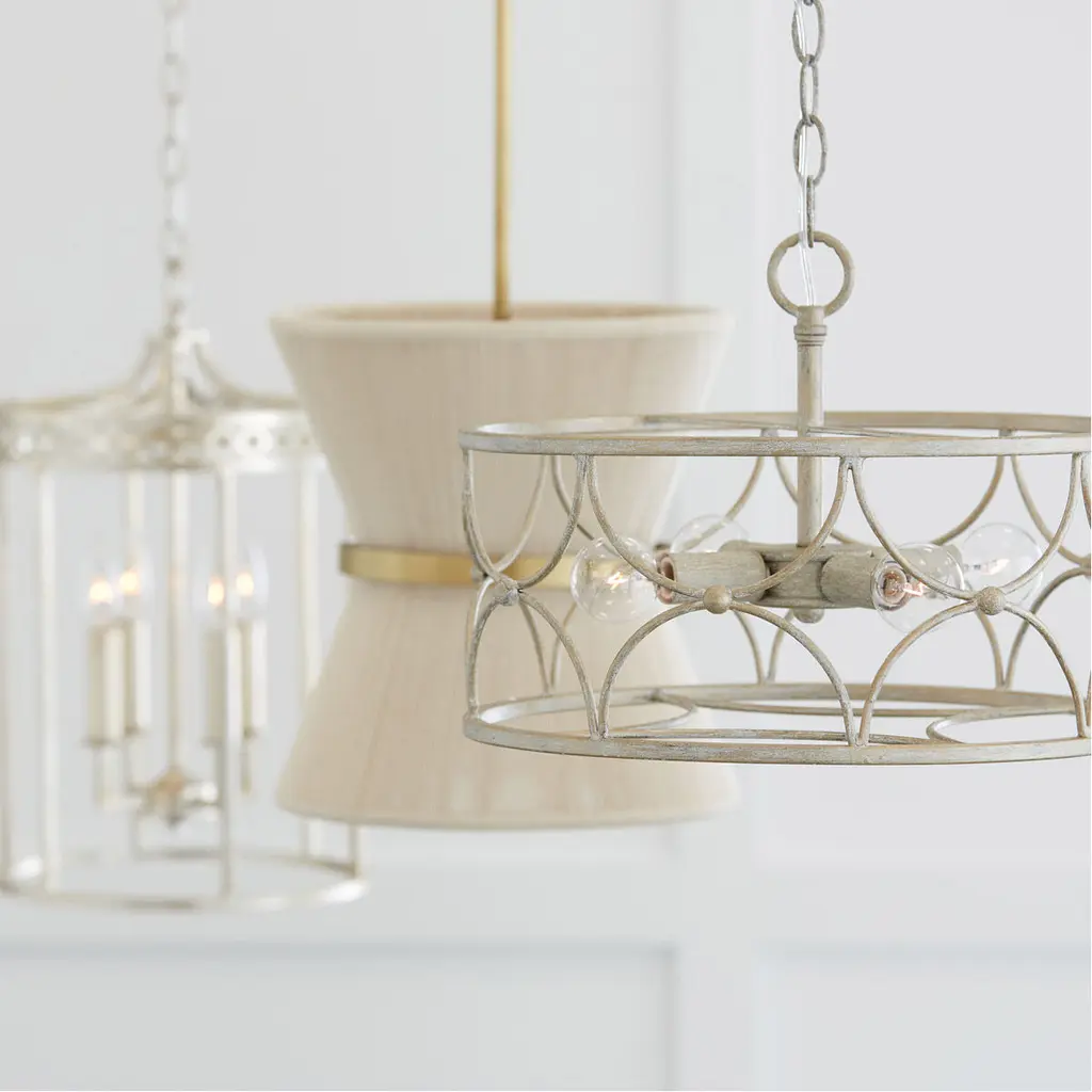Designed to function in two ways, the Ricci-Light Dual Mount Pendant features an airy, continuous pattern that is both elegant and enchanting. The Winter White finish adds a layer of visual texture and subtle shimmer to the design. This fixture can be used as a Semi-Flush or as a Pendant.