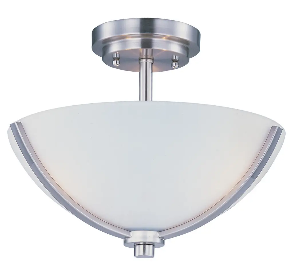 A clean, contemporary design featuring rectangular tubing, finished in your choice of Polished Chrome or Oil Rubbed Bronze, is enhanced by the tall scale, Satin White glass shades.