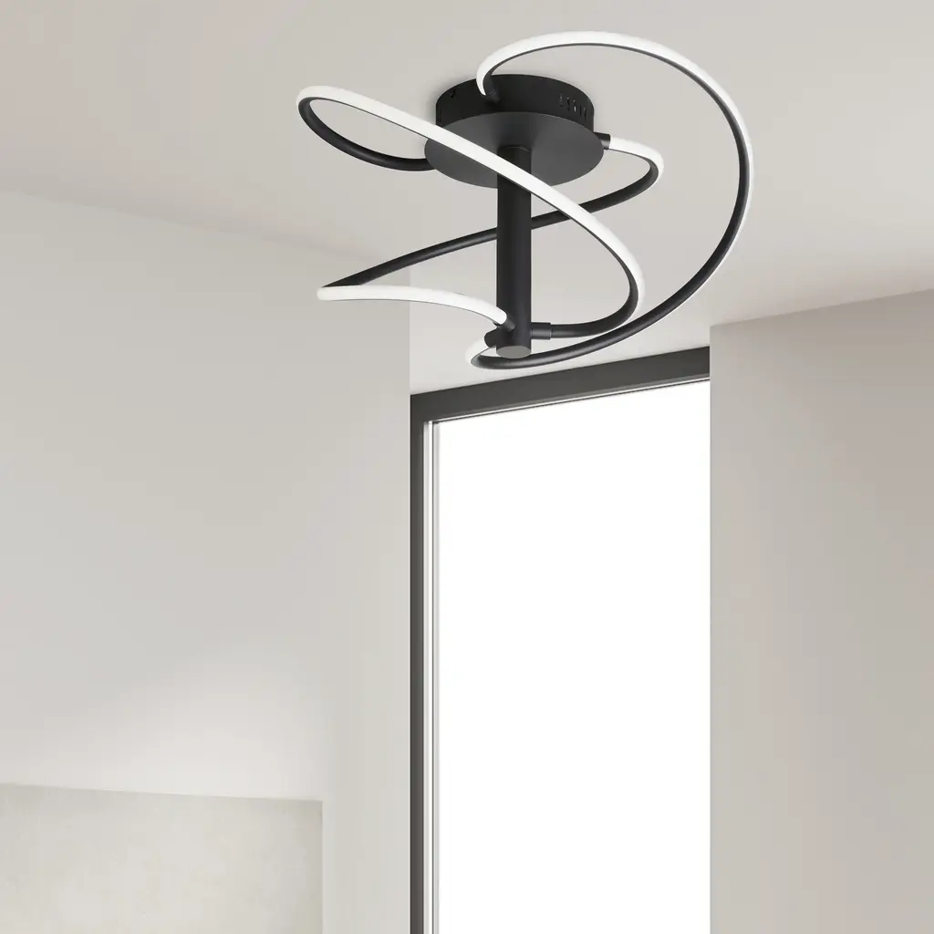 The fixture is stationary, yet there's a sense of motion inherent in the design of the Romy family of lighting. With its singular profile, the design features an integrated LED light. LED fixtures produce light at up to 90 percent better efficiency than incandescent lighting. The silicone LED housing is integrated into the metal base. From it, curved arms circle around the canopy in a dimensional overlapping pattern. It's an eye-catching contemporary look that adds welcome curves to your contemporary living or dining rooms, or a fashionable bedroom.