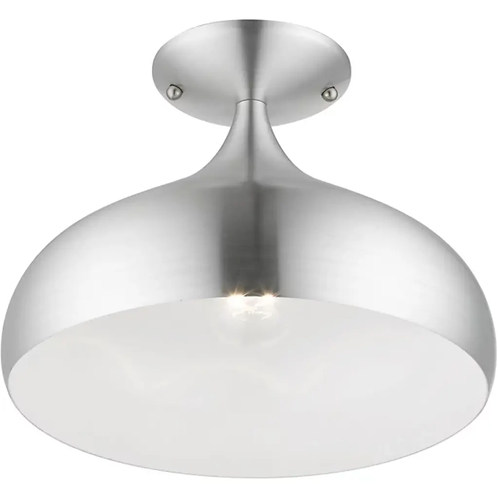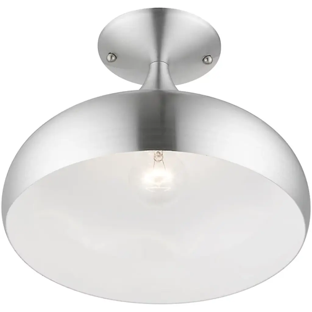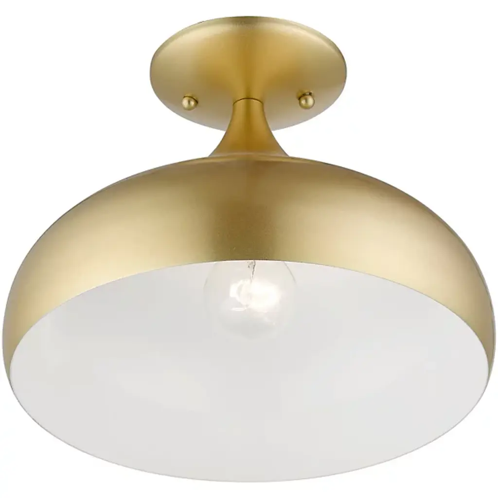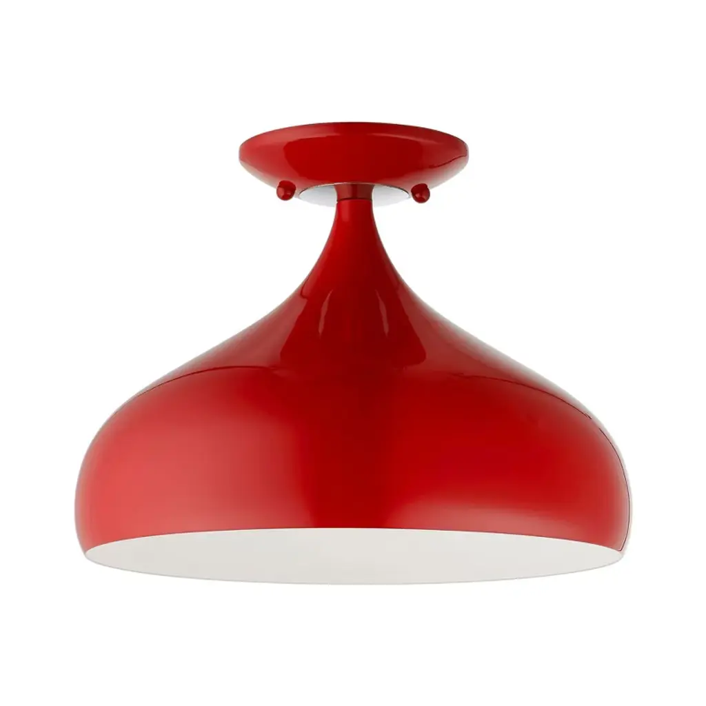 The Rork Semi-Flushmount from Alder & Ore helps creates an instant sense of attraction to the room as a focal point of lovely curves painted with rich light. The piece falls right into place in chic modern or contemporary space. A compact canopy makes low-ceiling areas a great candidate for this design. This canopy transitions seamlessly in shape to the shade, enhancing the overall sculptural look. Generous curves define the silhouette of the glare-reducing metal shade. The shade mellows bright light across its painted, curvy interior, translating to a broad stream of atmospheric illumination.