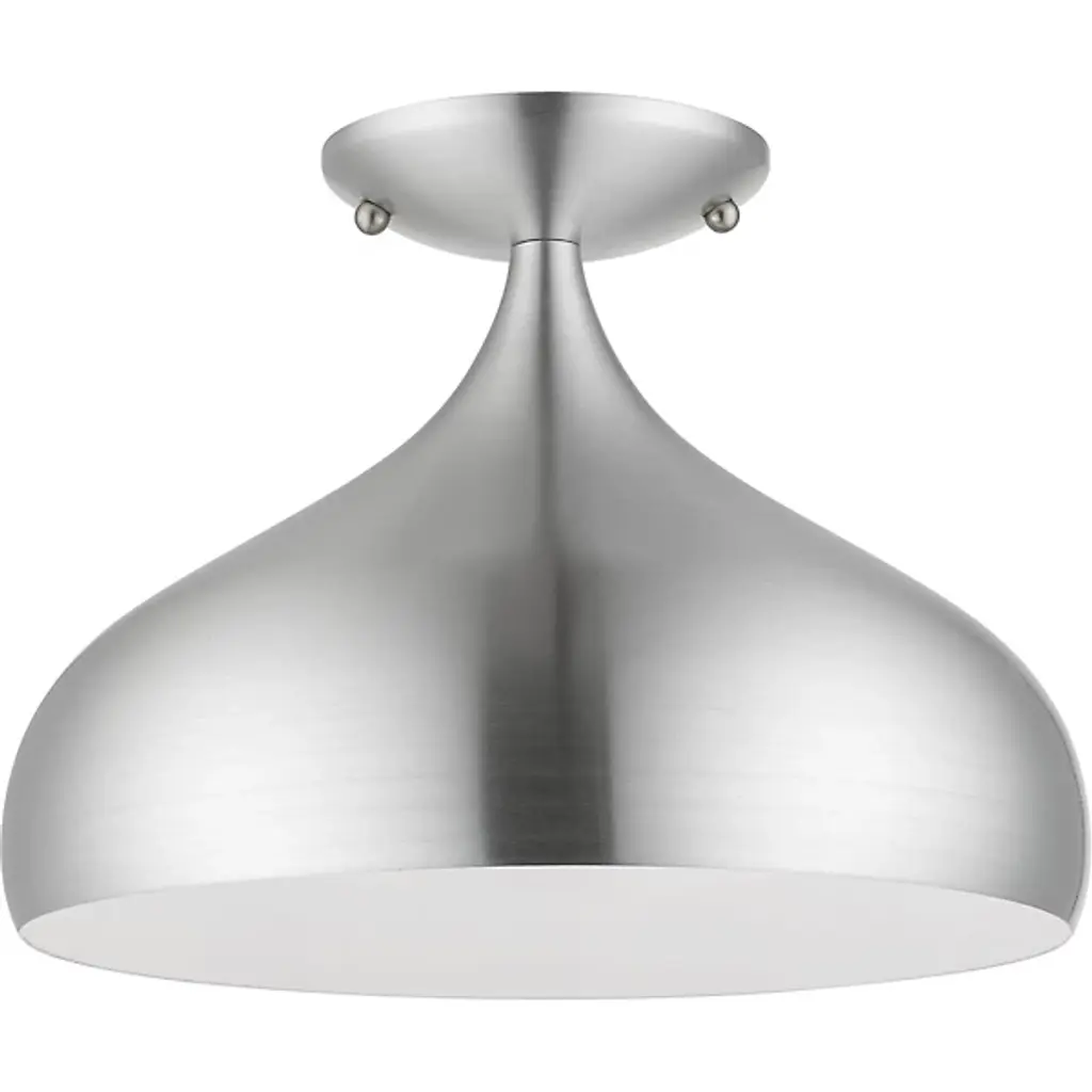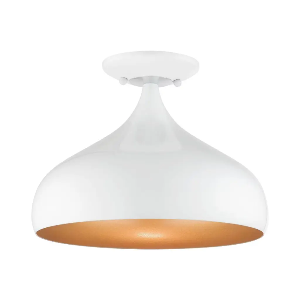 The Rork Semi-Flushmount from Alder & Ore helps creates an instant sense of attraction to the room as a focal point of lovely curves painted with rich light. The piece falls right into place in chic modern or contemporary space. A compact canopy makes low-ceiling areas a great candidate for this design. This canopy transitions seamlessly in shape to the shade, enhancing the overall sculptural look. Generous curves define the silhouette of the glare-reducing metal shade. The shade mellows bright light across its painted, curvy interior, translating to a broad stream of atmospheric illumination.