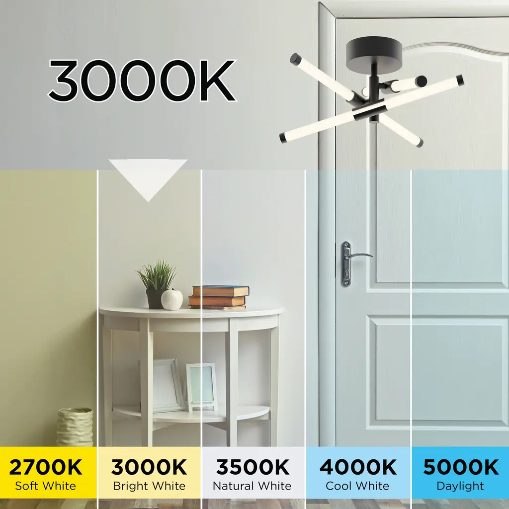 Illuminate your space with the captivating Rusnak LED Semi-Flush Mount by AFX. Crafted with a combination of steel and acrylic, this fixture features a white acrylic diffuser that disperses a soft and inviting glow. Composed of radiating tubes of LED light, this semi-flush mount creates a stunning visual effect that adds a modern and eye-catching touch to any room. It is also dimmable with a TRIAC/ELV dimmer and Title 24 compliant, offering flexibility and energy efficiency.